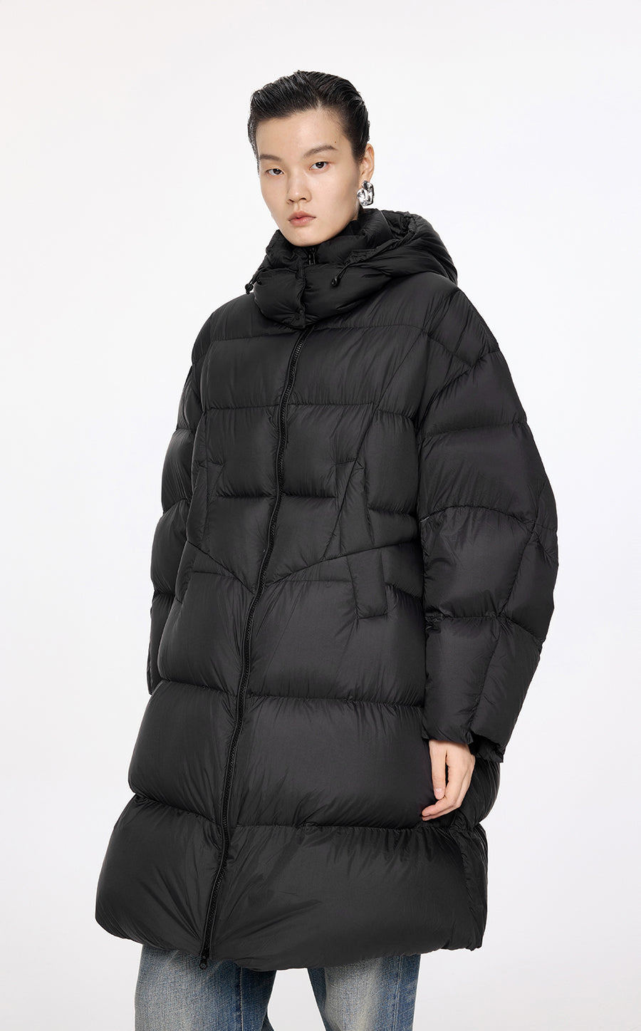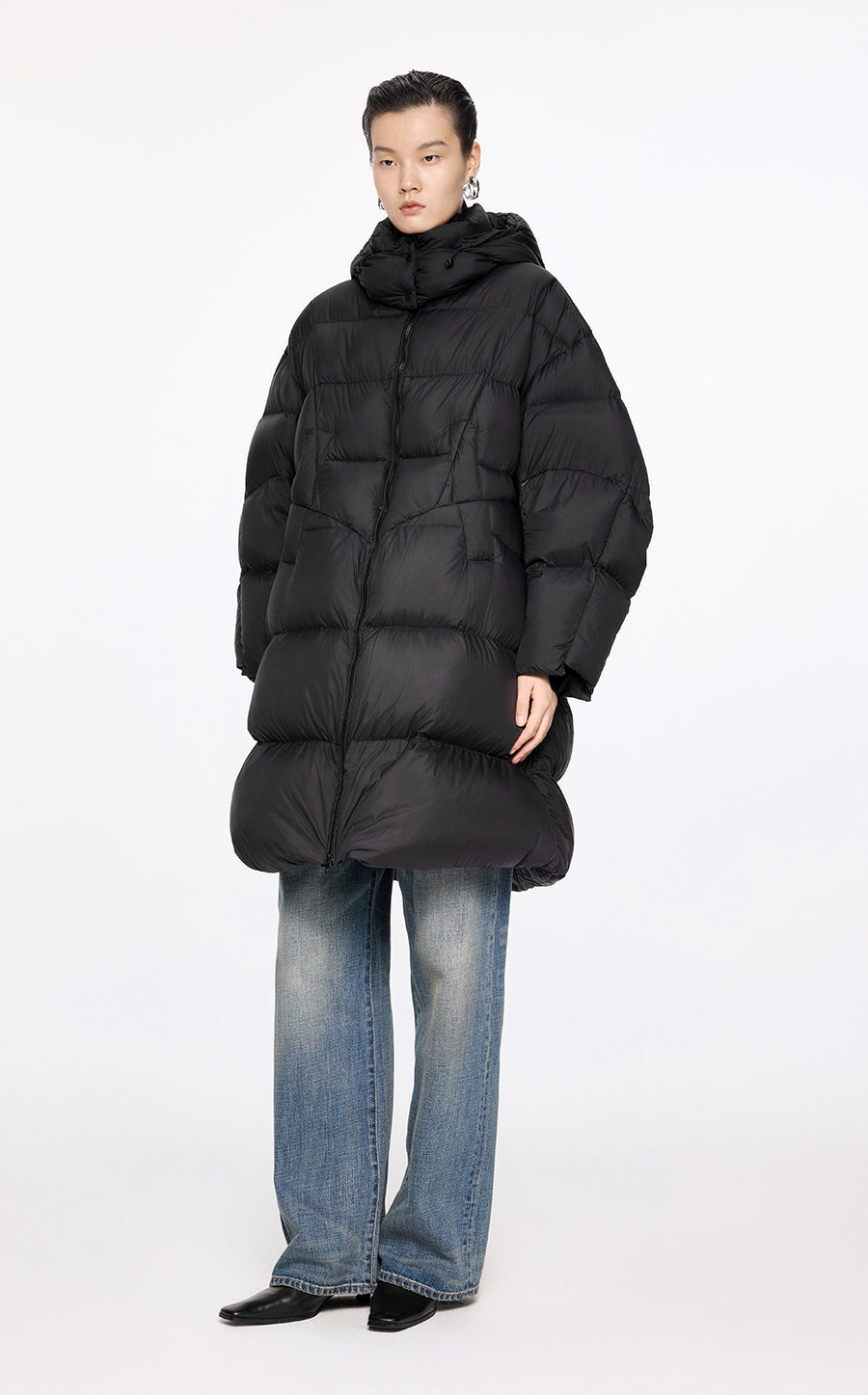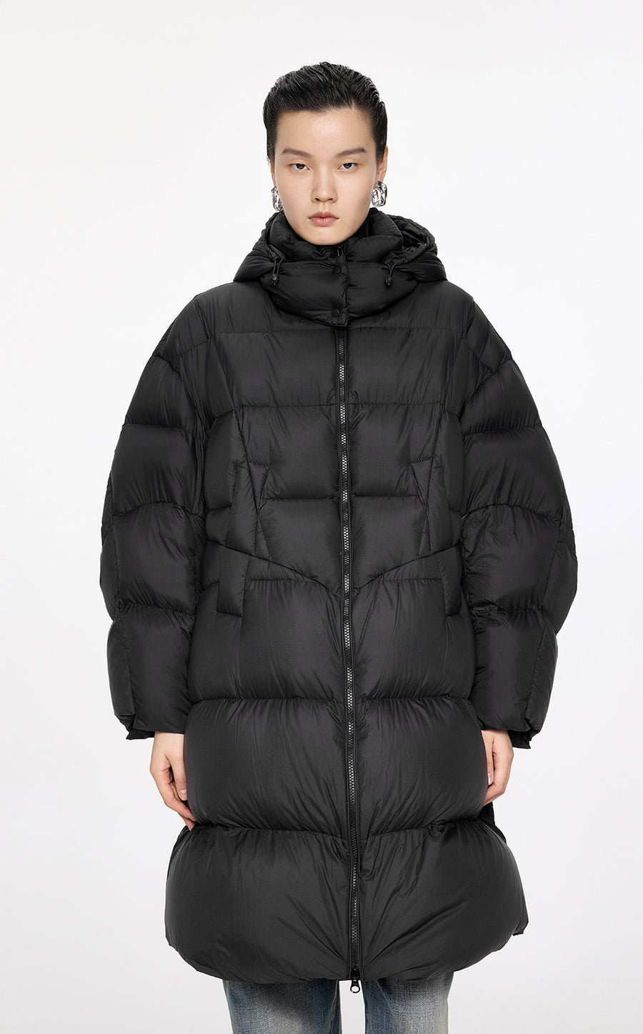 Downcoat / JNBY Irregular Mid-Length Hooded Down Coat