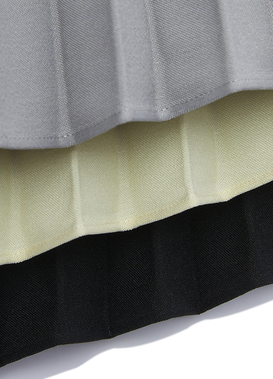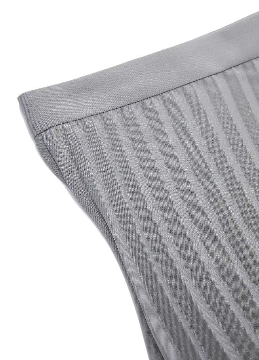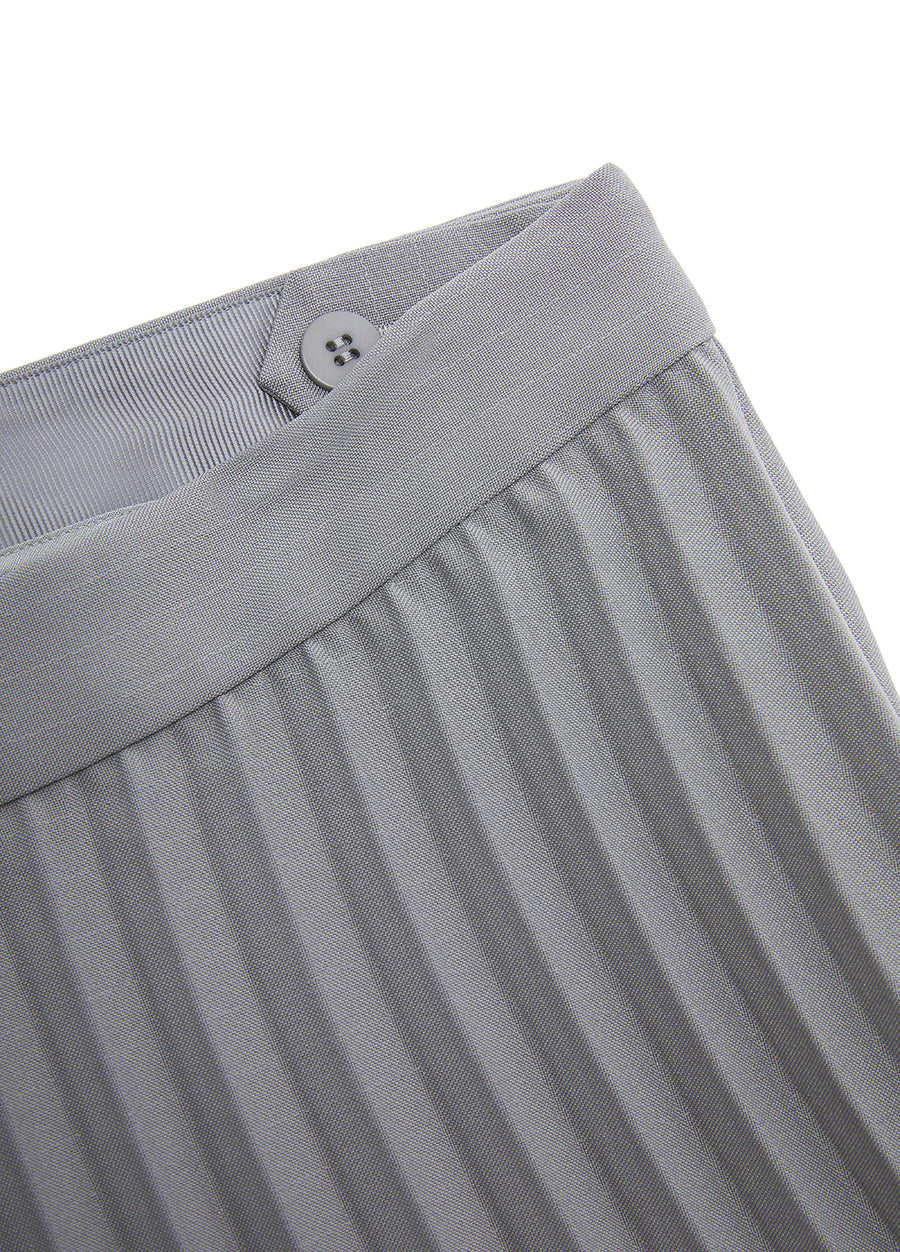 The advanced version of the classic pleated waist skirt, the curved pleats make the skirt more natural and flexible, and the skirt length reaches the calf to modify the leg line