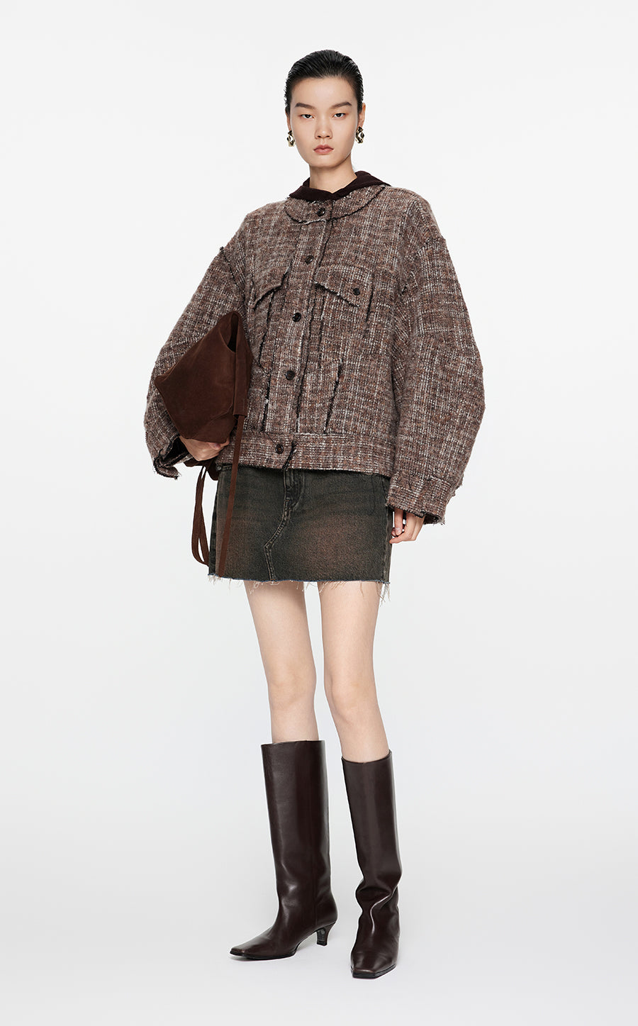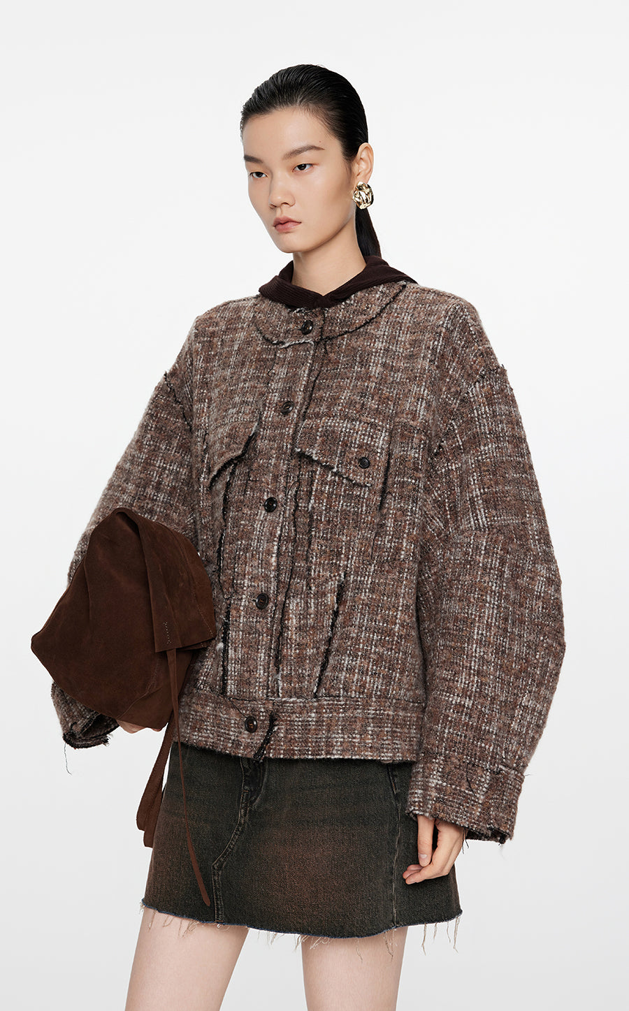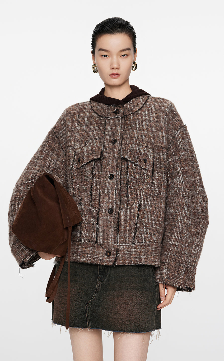 Coat / JNBY Oversize Collarless  Jacquard Coat