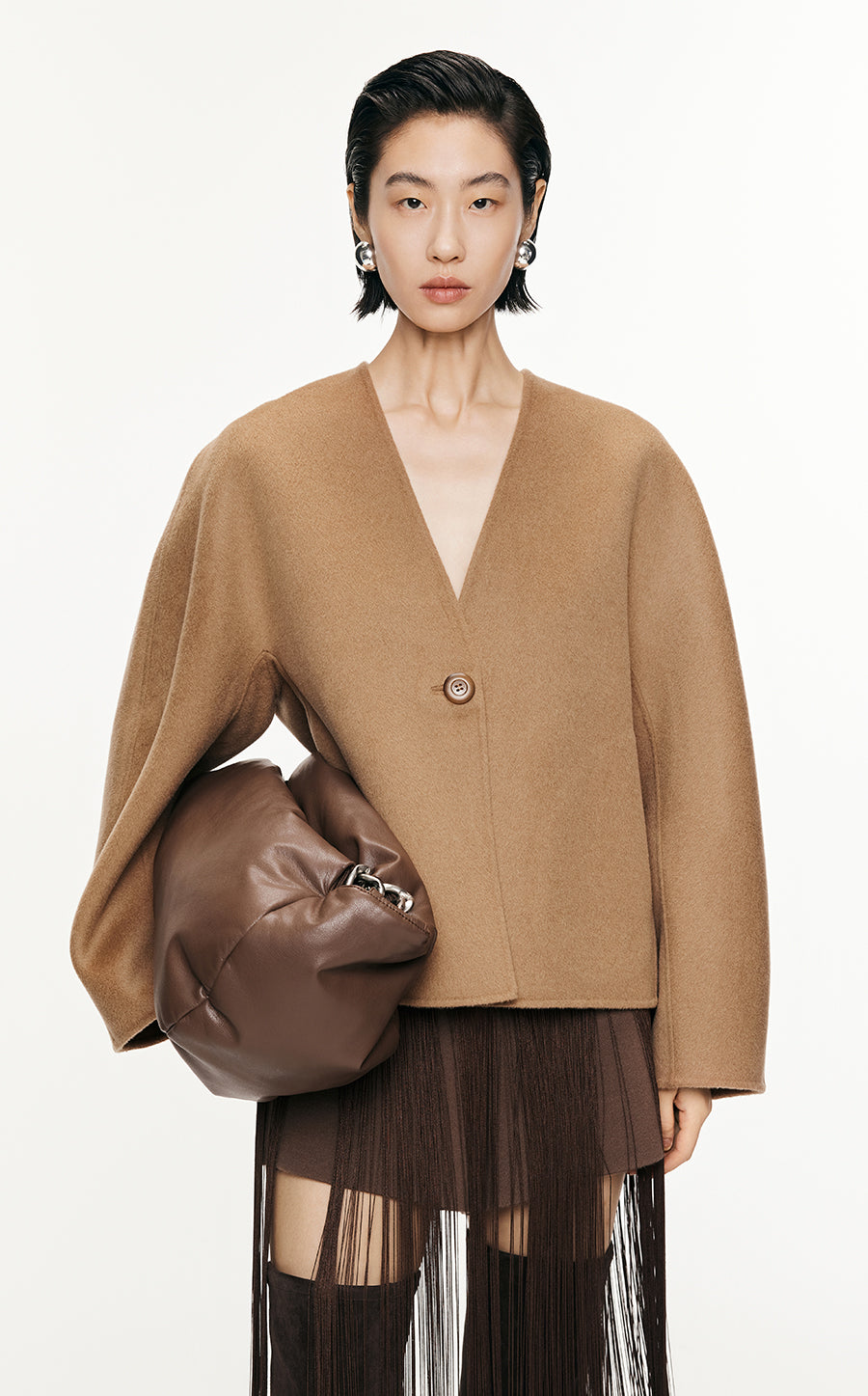 Coat / JNBY Relaxed V-neck Wool Coat