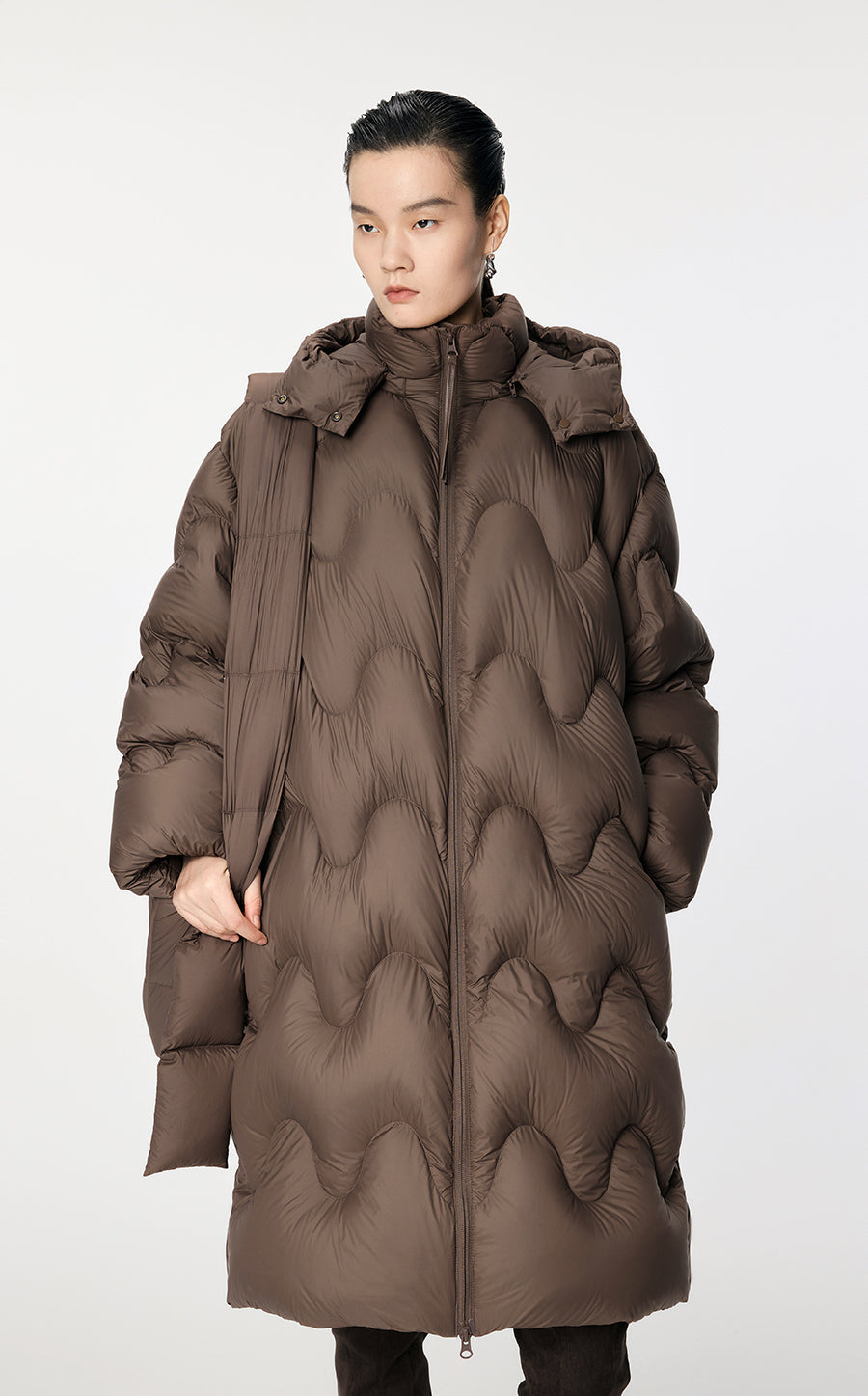 Downcoat / JNBY Oversize Wavy-Line Hooded Down Coat
