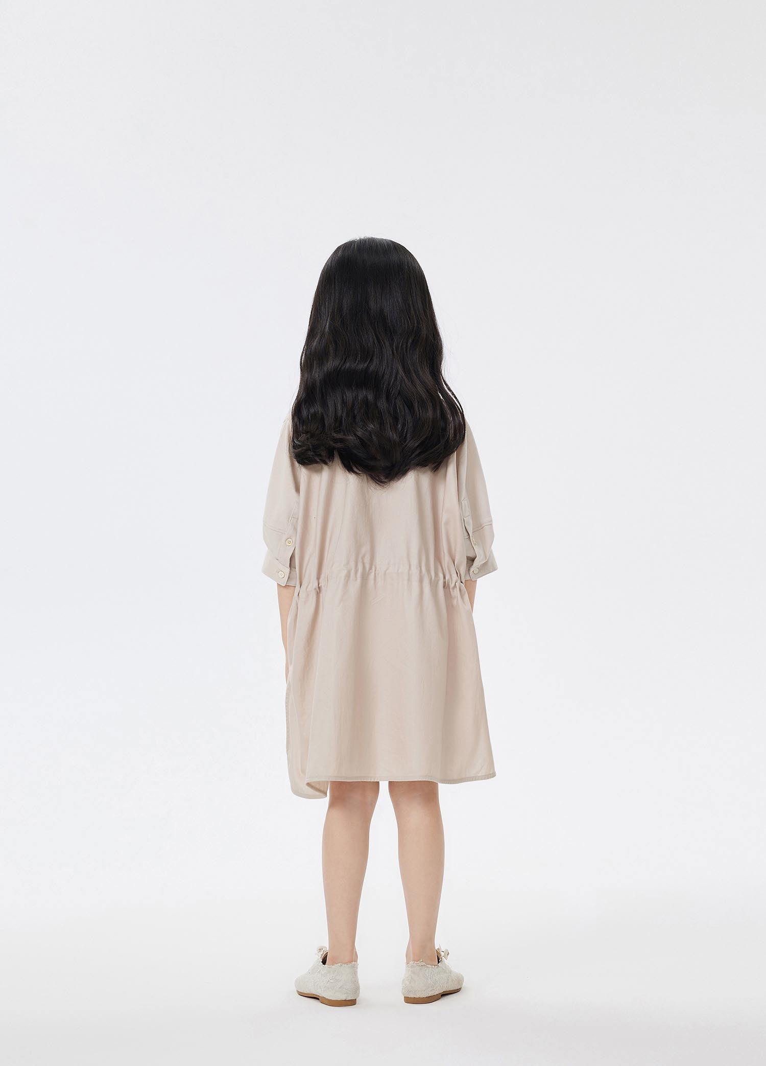 The addition of elastic silk makes the original fabric more elastic, and children will not feel restrained when wearing it, making it more comfortable. This shirt-style dress combines the formality of a shirt with the femininity and elegance of a dress. It is suitable for children to wear on various occasions.