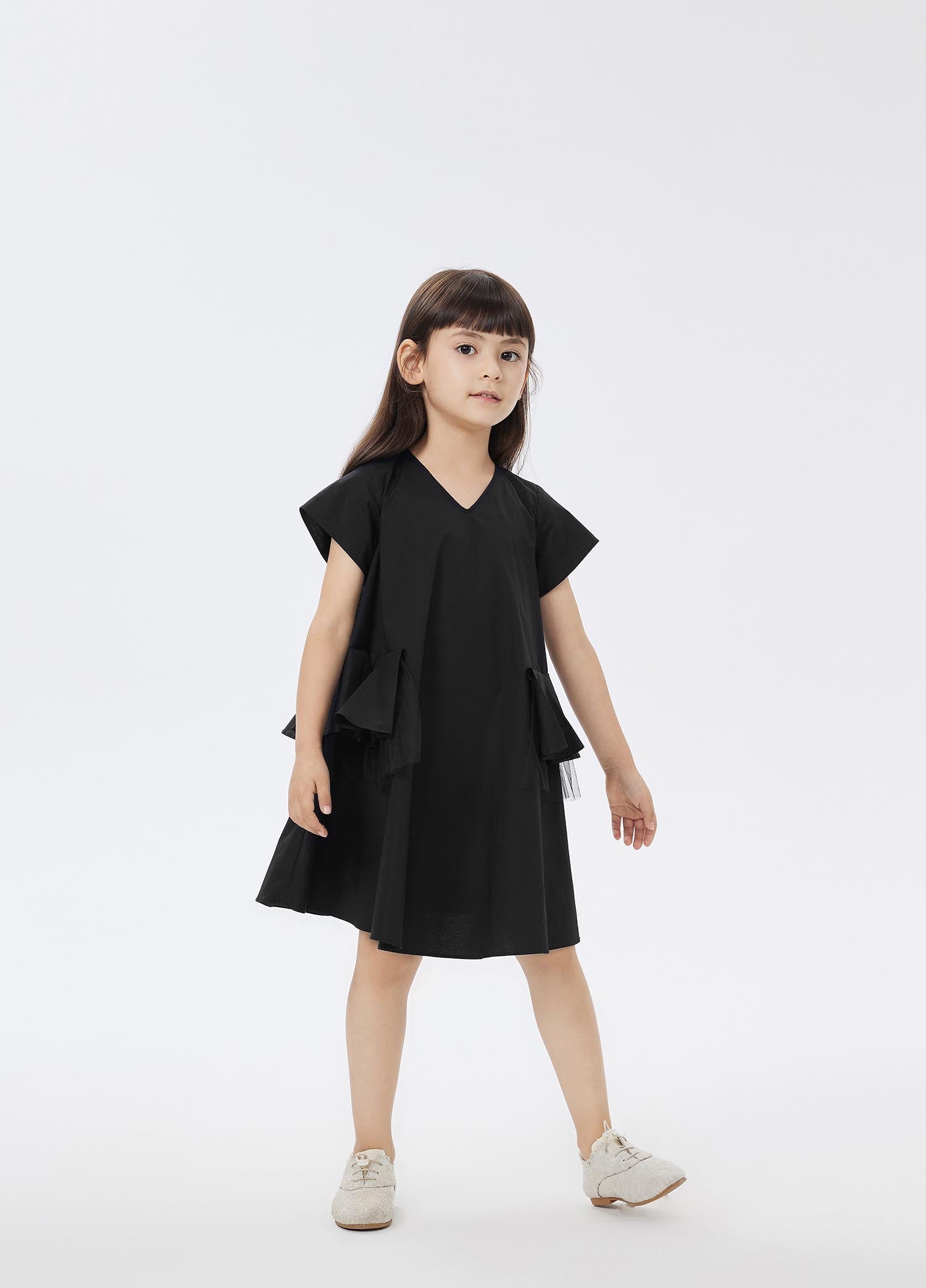 The fabric is made of high-density elastic poplin, which feels delicate and smooth, and has great elasticity. It is very light for children to wear, and there is no sense of restraint. . In the hot summer, the vest dress is the best choice for little girls. It is very cool. The detailed design of the ruffles on both sides adds to the girlishness of this dress. Little girls can't take it off at all.