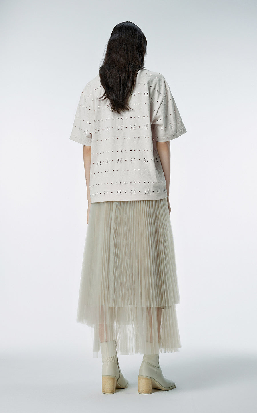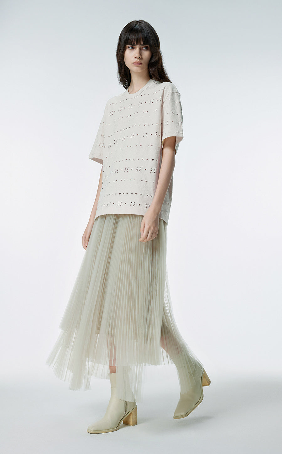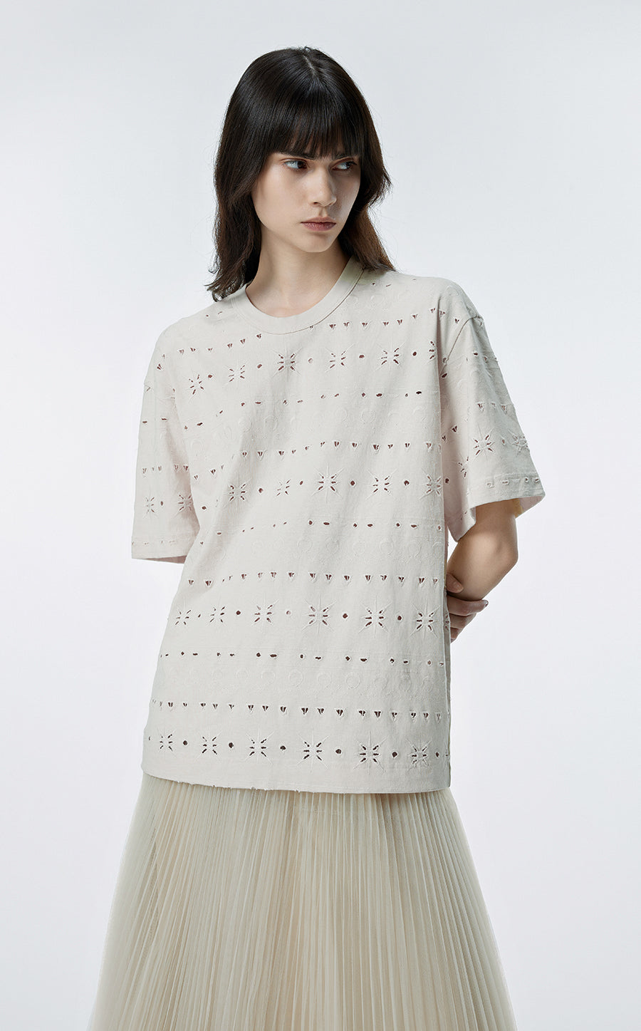 T-shirt / JNBY Round Neck Hollow Out Cotton T-shirt