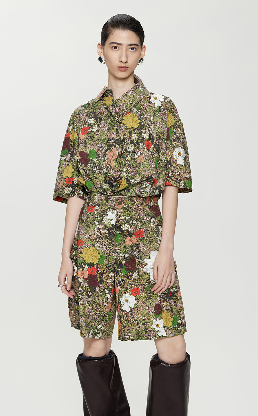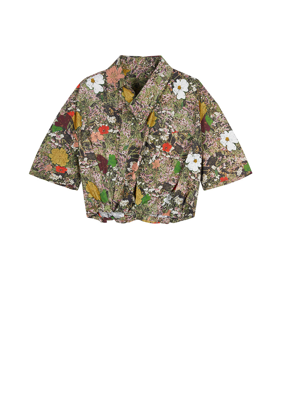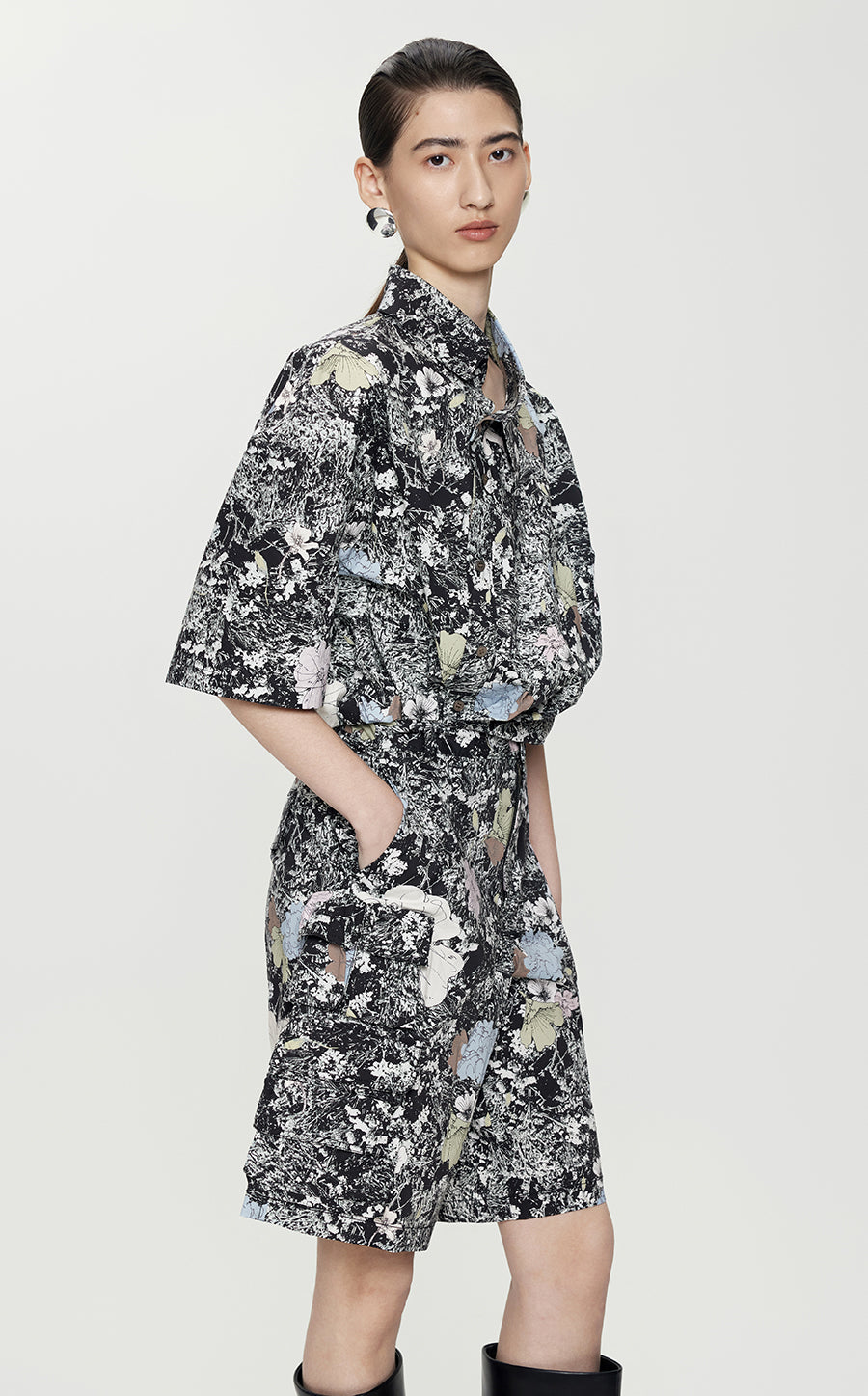 Shirt / JNBY Floral-print Cropped Short-sleeve Shirt