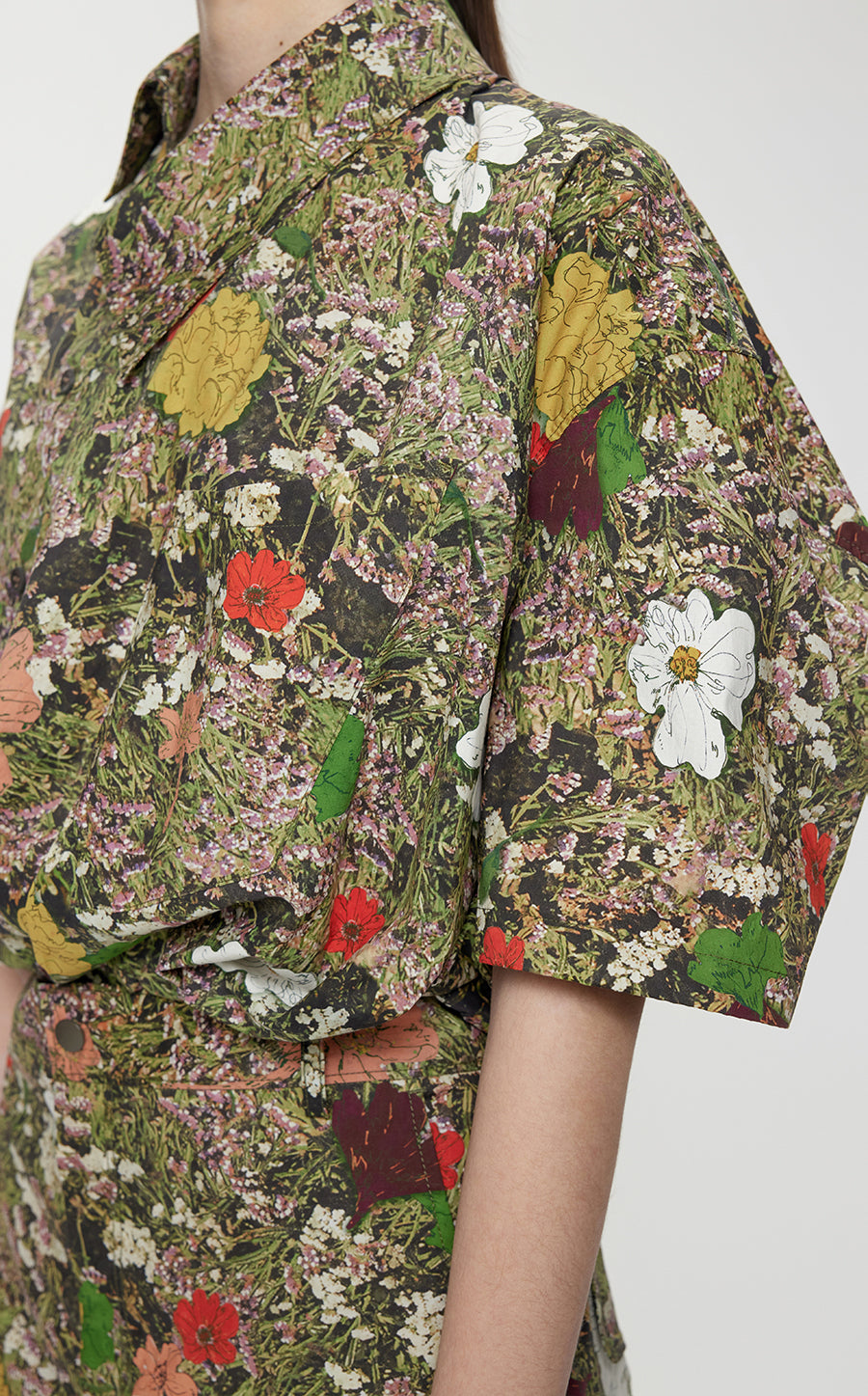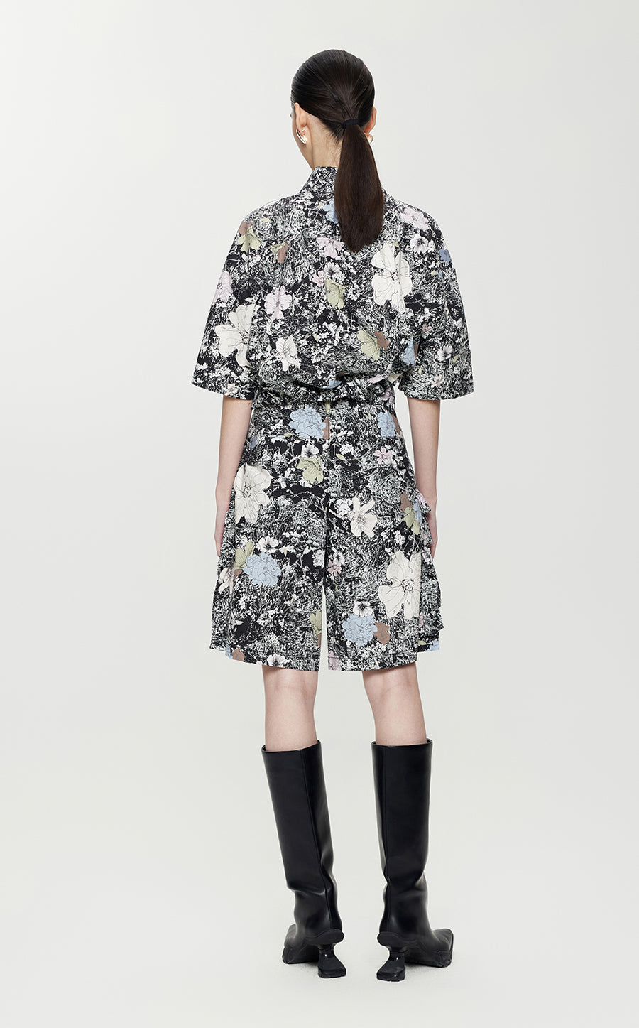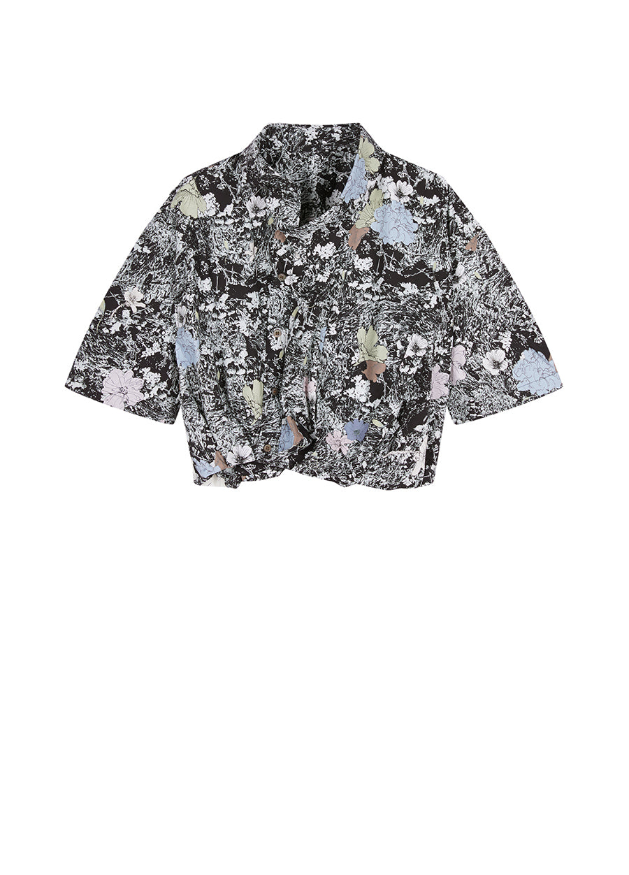 Shirt / JNBY Floral-print Cropped Short-sleeve Shirt