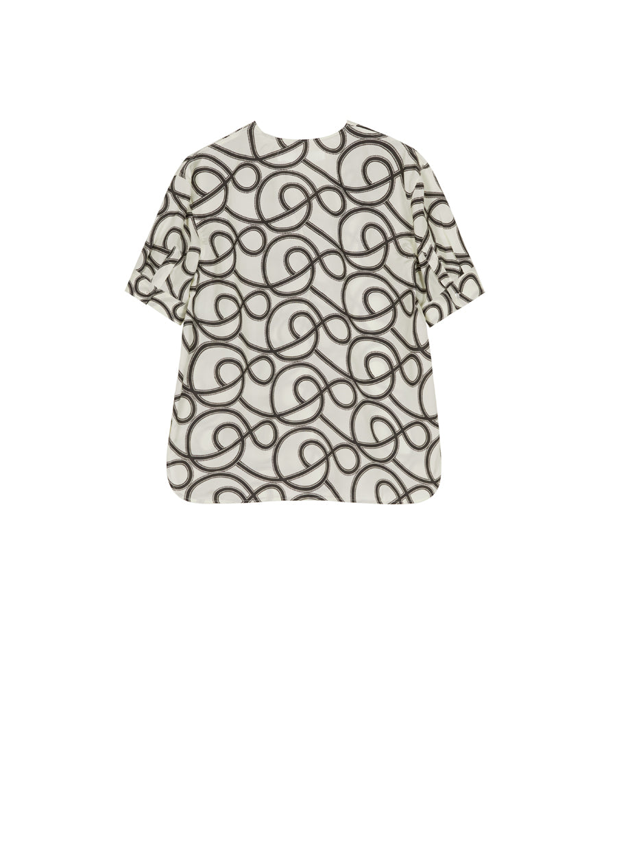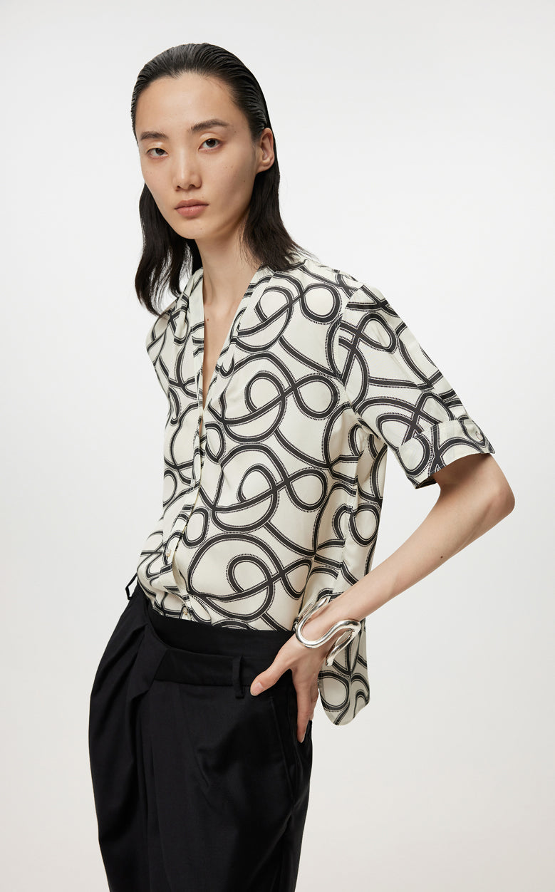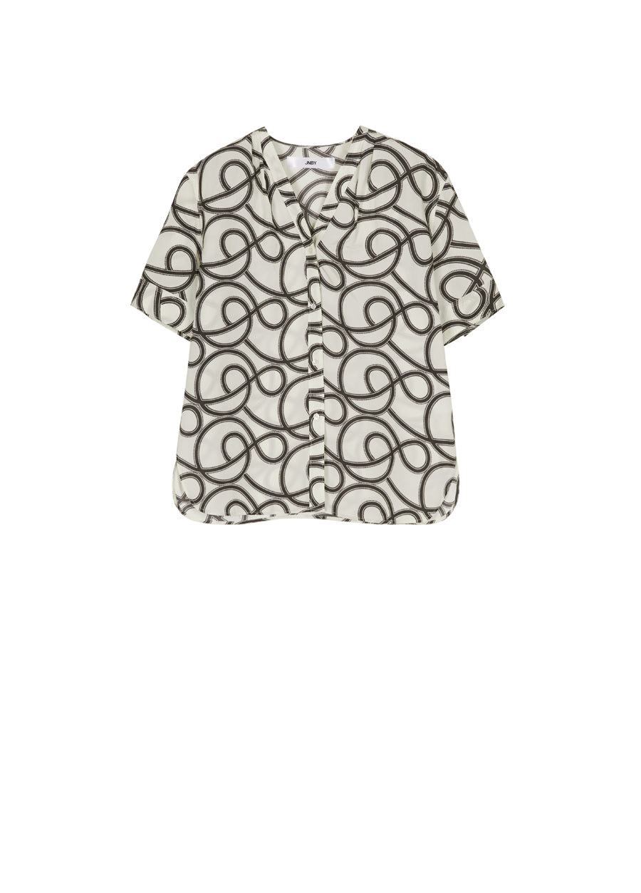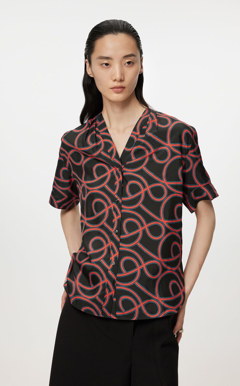 Shirt/JNBY Musical Note Print V-neck Colorblock Short-sleeved Shirt(40% mulberry silk )