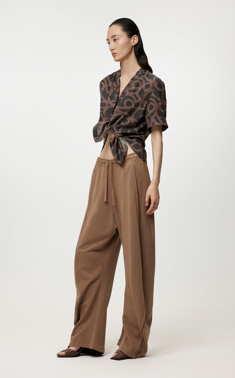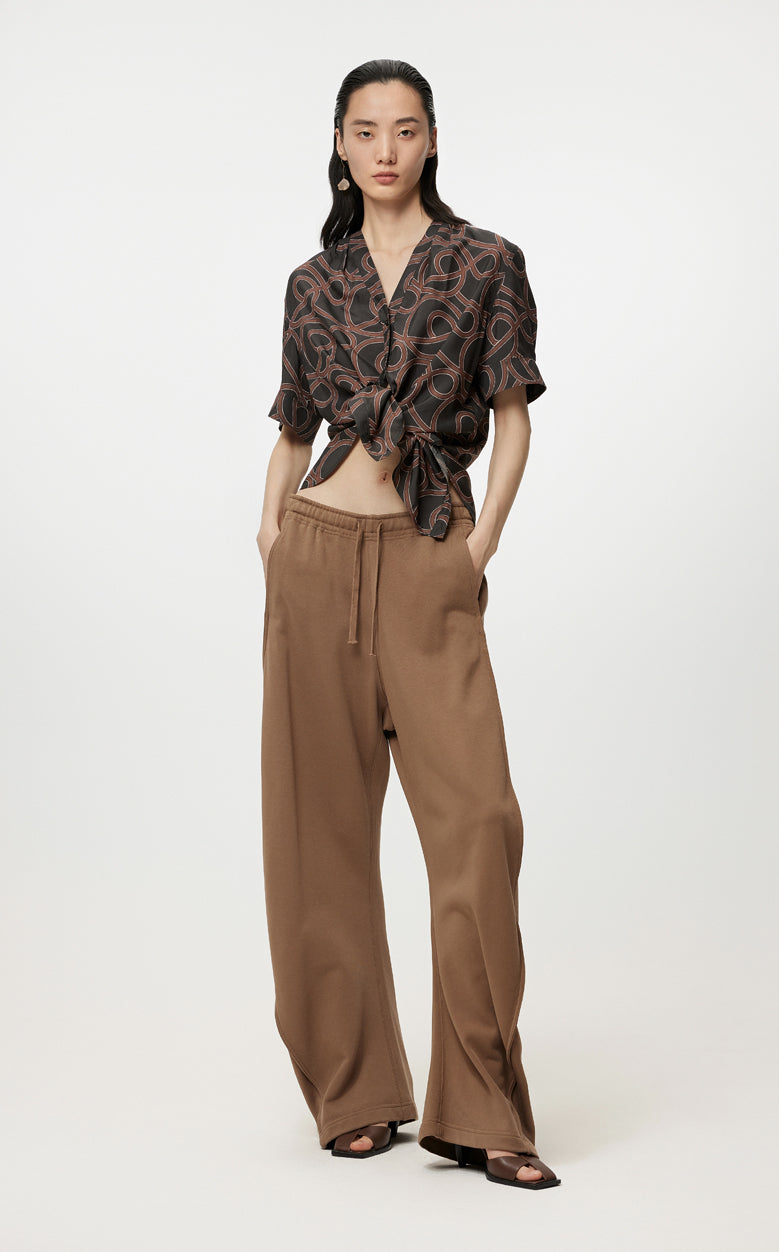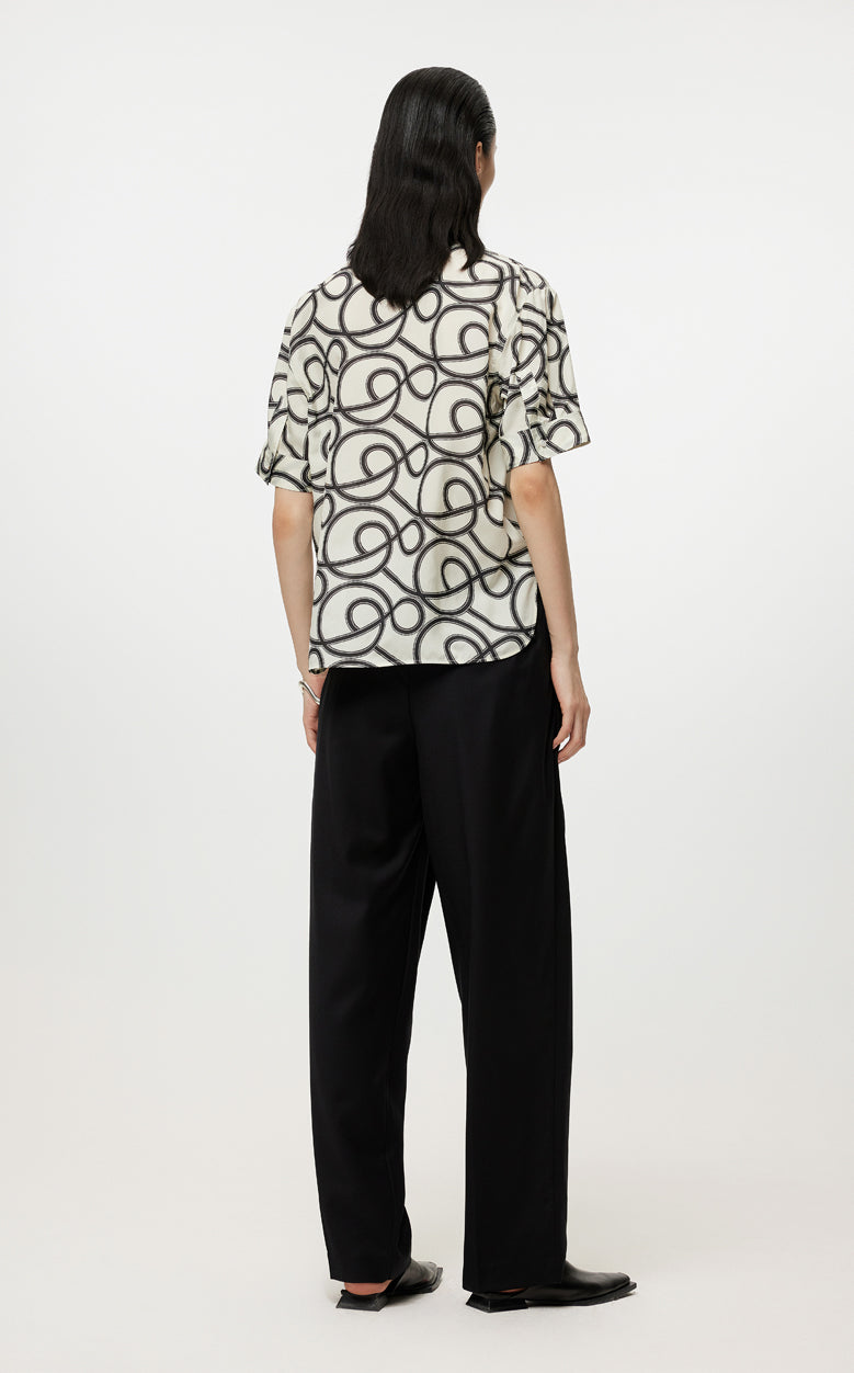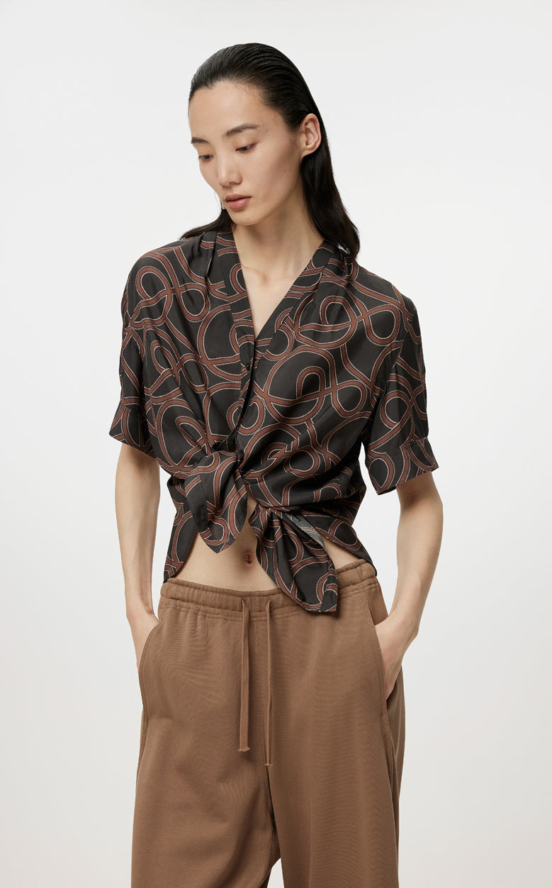 Shirt/JNBY Musical Note Print V-neck Colorblock Short-sleeved Shirt(40% mulberry silk )