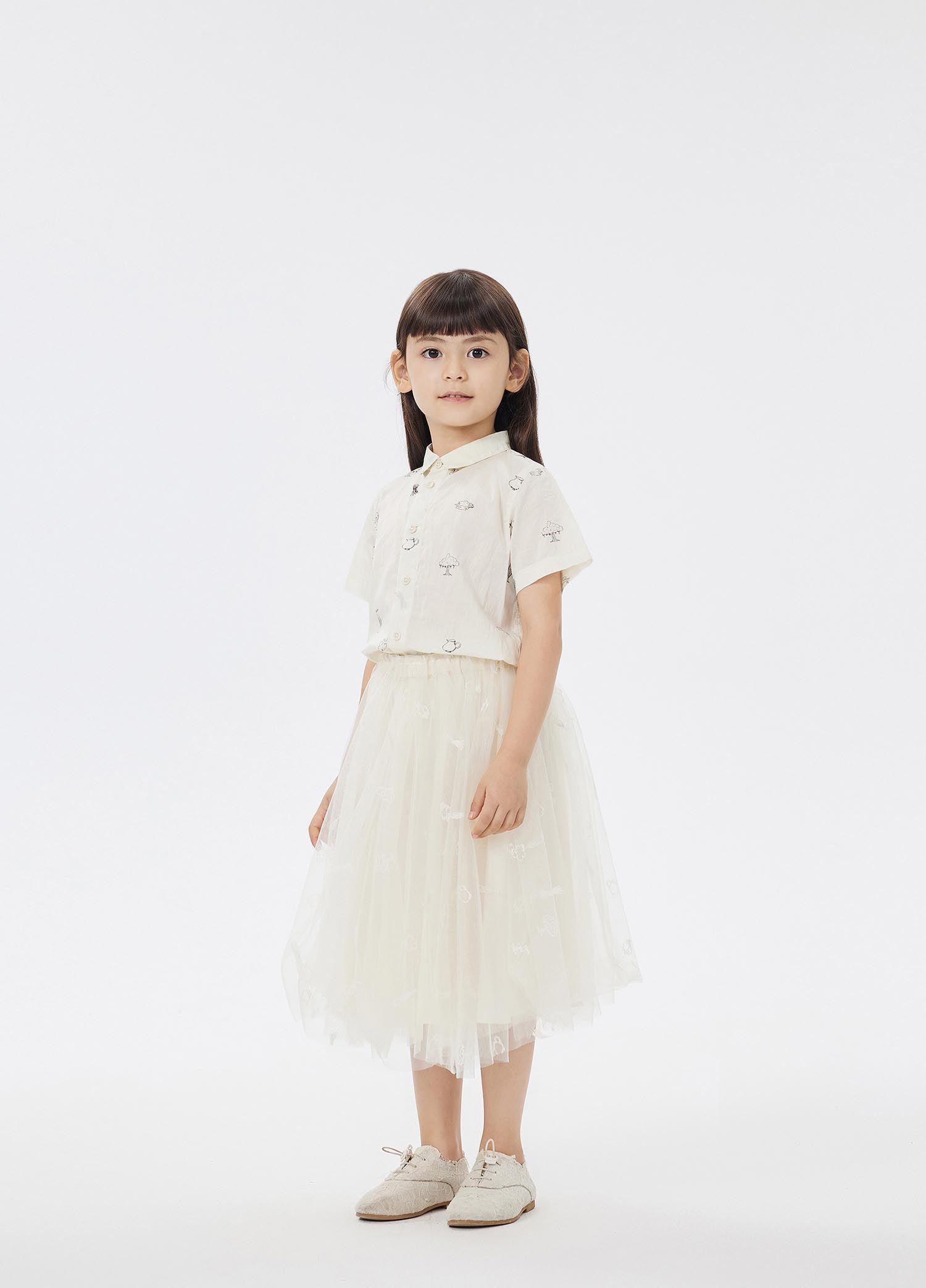 The whole body imitates the hand-embroidered design, which is very delicate, and it is very eye-catching for children to wear. The gauze skirt is the favorite style of little girls. There is no such thing as one. The children wear fairy air and look like a little fairy. It is very suitable for traveling and taking pictures.