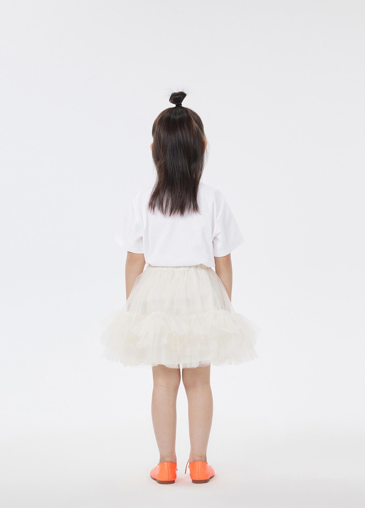 The fabric is tight and dry, and it doesn't stick to the body when sweating. Children don't have to worry about exercising a lot. The classic T-shirt version is simple and versatile, and the radial bow on the chest is very eye-catching. It is very trendy and special for children to wear.