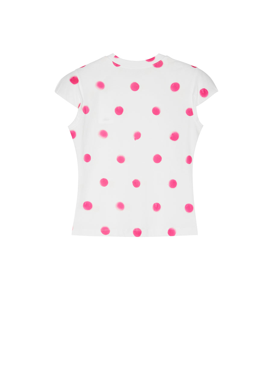 T-shirt / JNBY Polka Dot Slim Fit Round Neck Shoulder Pad Short Sleeve T-Shirt(100% cotton)