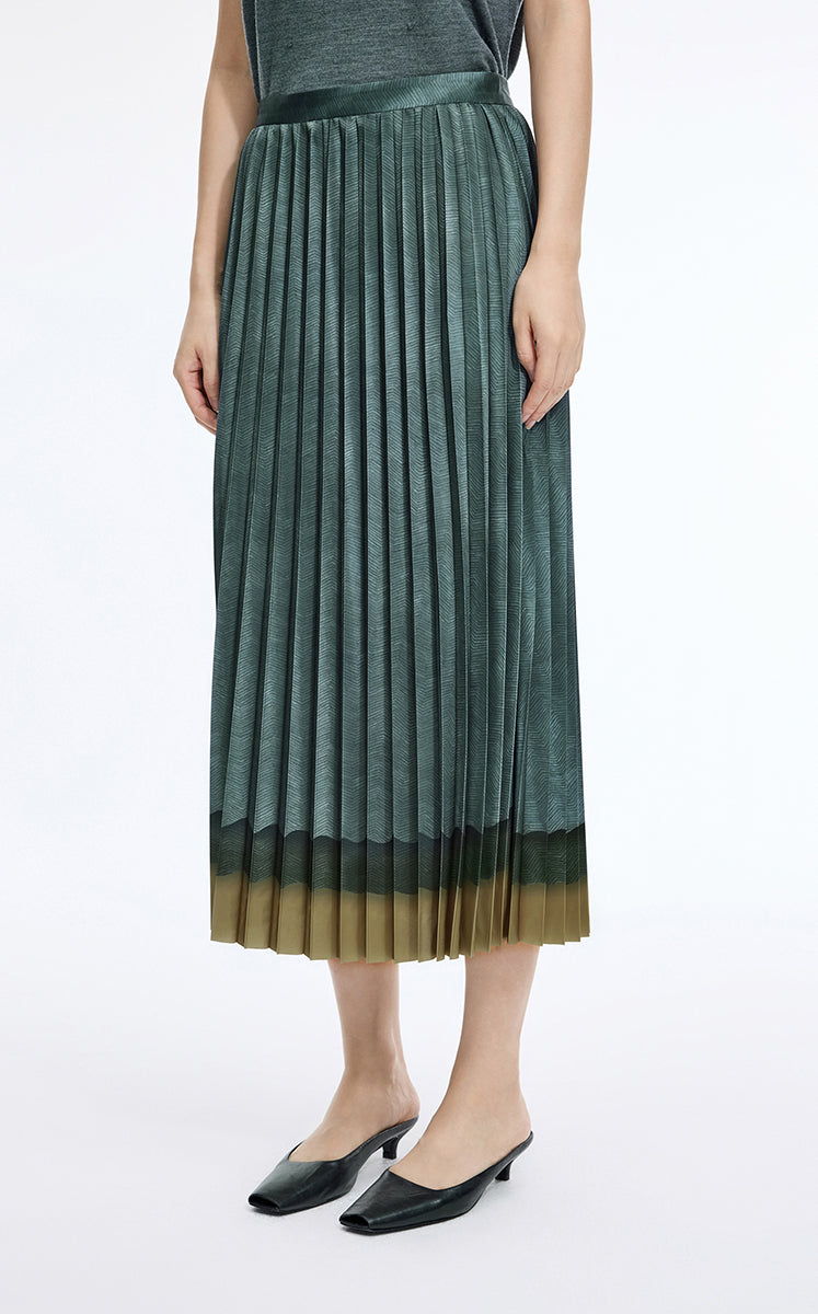 Skirt / JNBY Pleated A-Line Long Skirt with Wave Hem