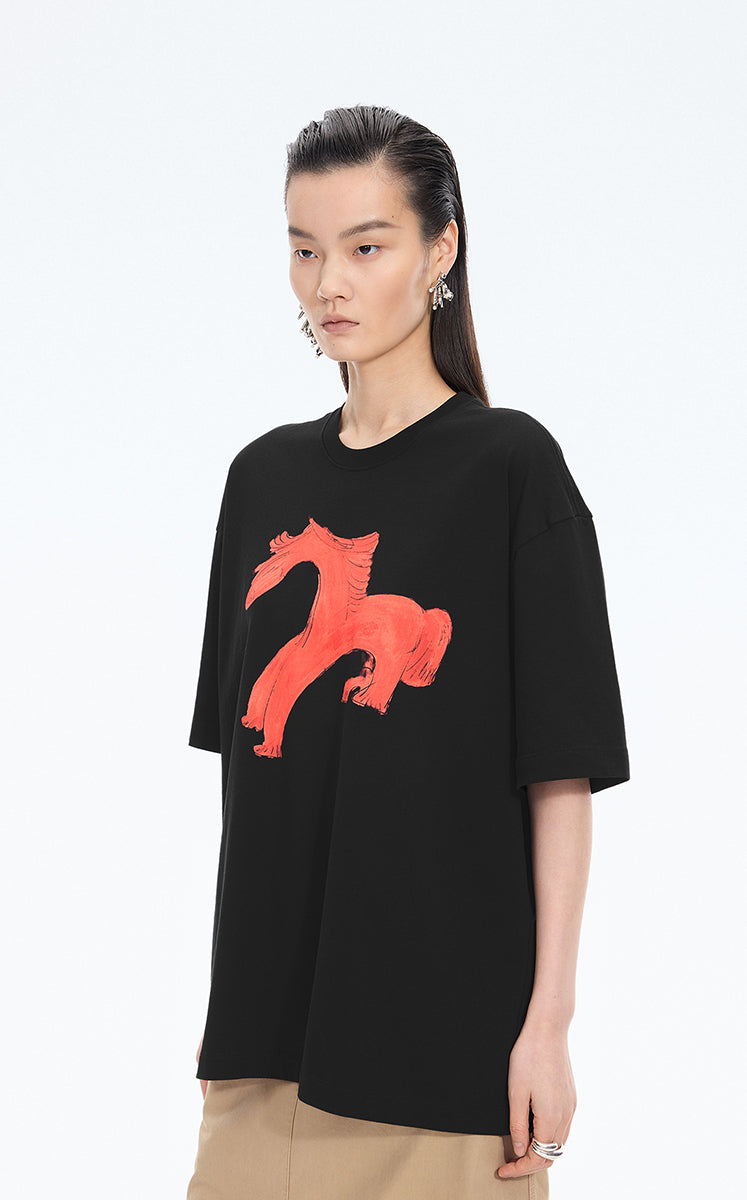 T-Shirt / JNBY Loose Pony Graphic Cotton Tee