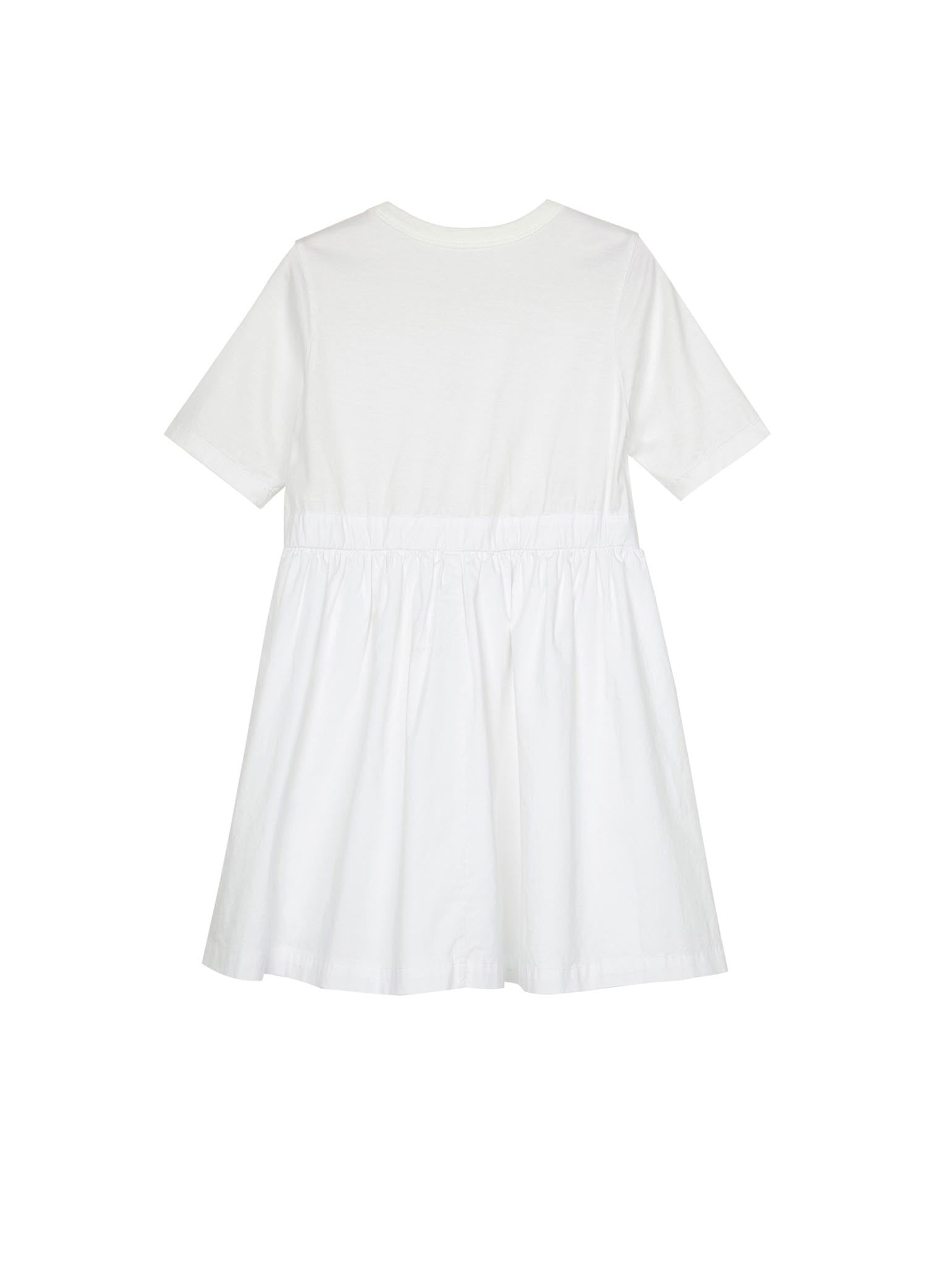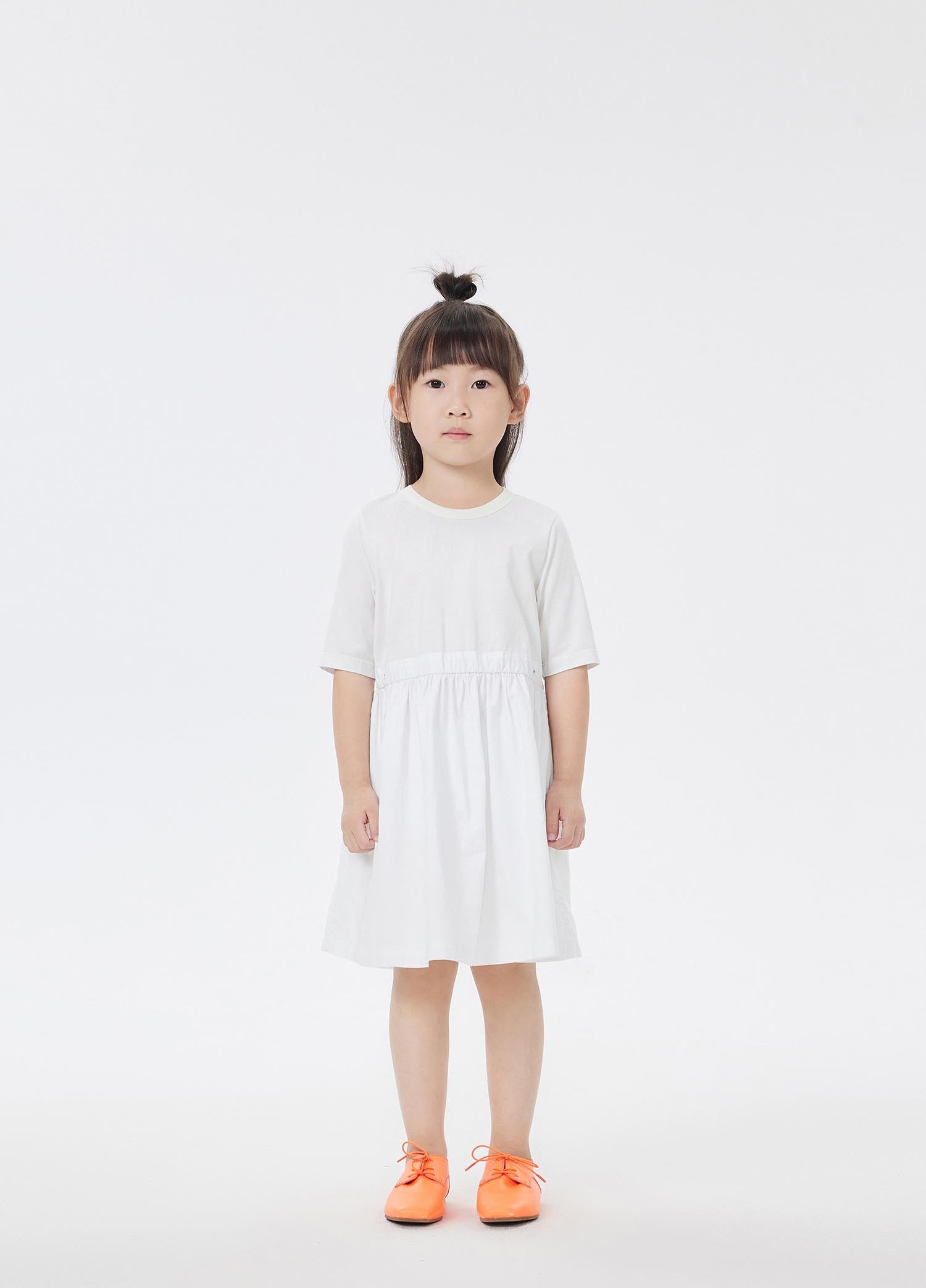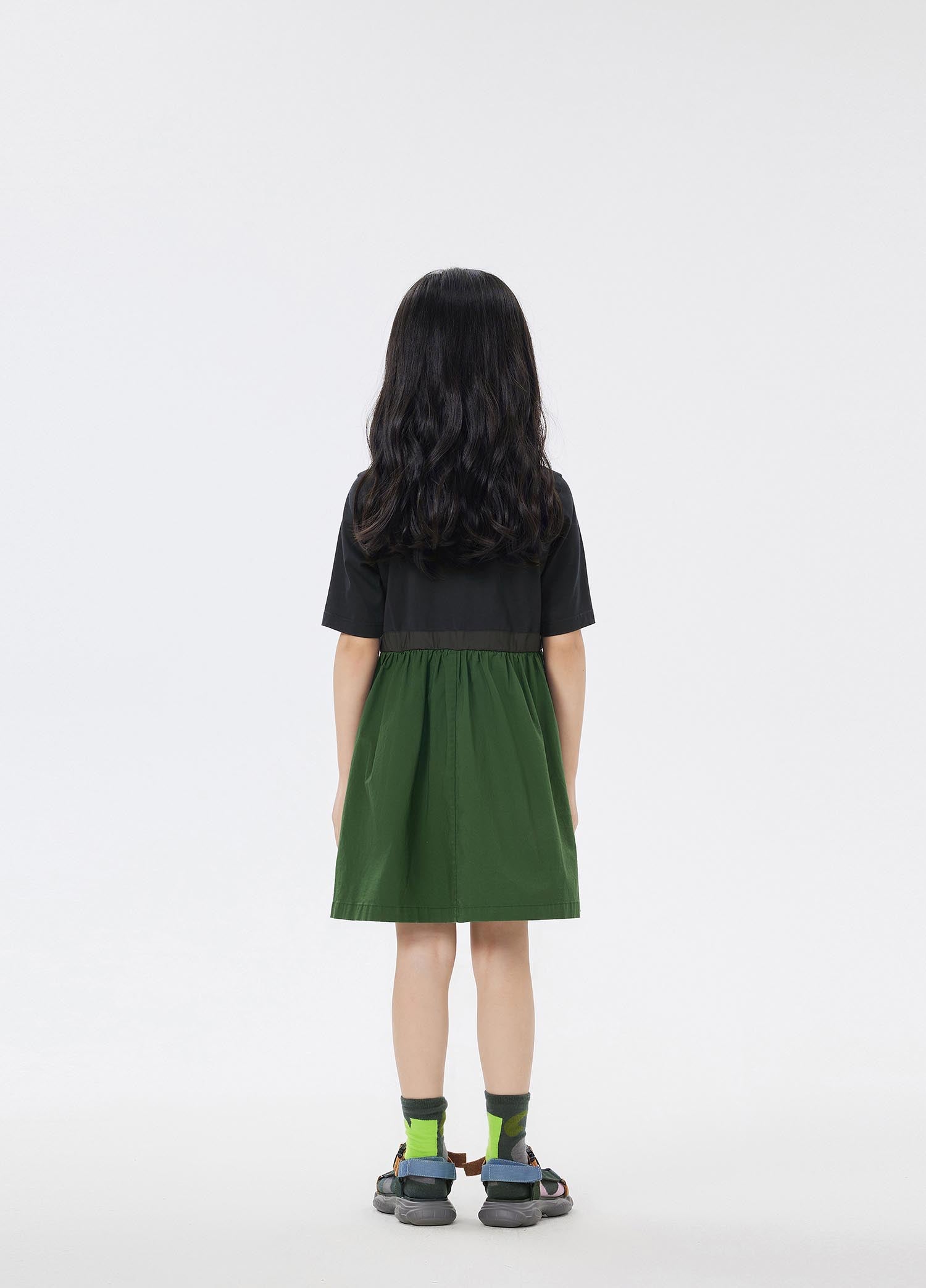 The mercerized jersey fabric used is softer and glossier than ordinary knitted cotton fabrics, and the quality of children's wear is very high. Compared with the net yarn, the poplin material spliced at the hem is not procrastinating, and it is also easier to take care of. It is very suitable for children to wear for daily outings.
