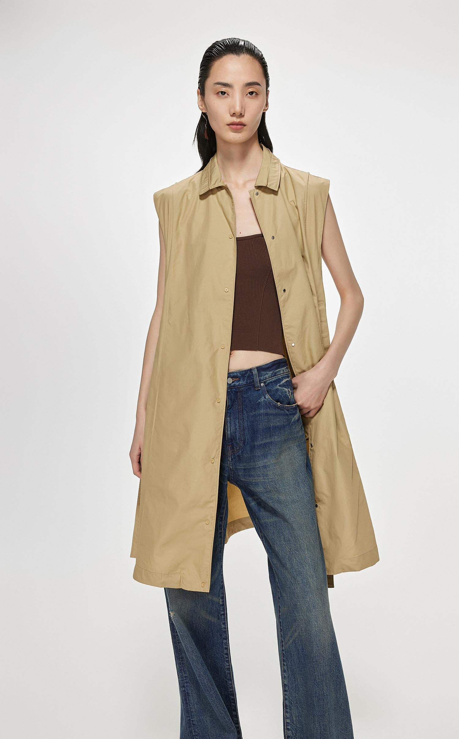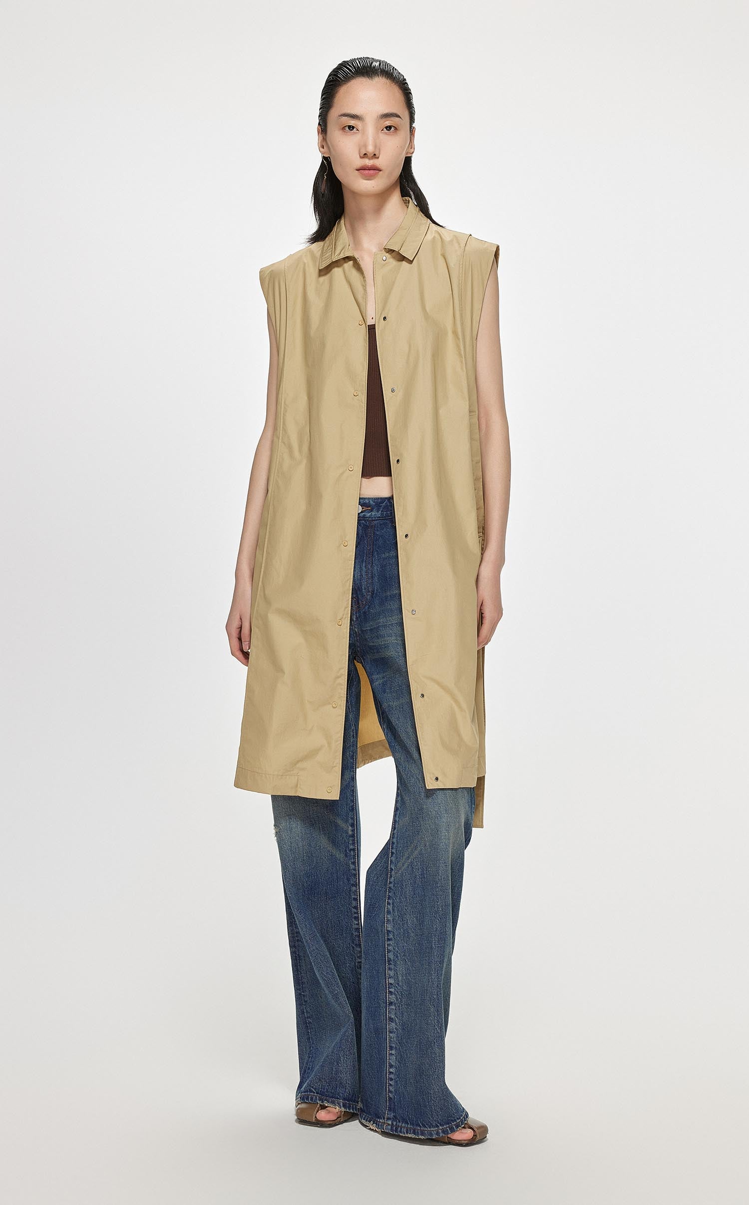 It is a minimalist one-piece dress, but it has stitching treatment on the body of the skirt. When worn, it has a slight sense of shape and is very thin. The stitching details on the neckline make it more visually layered. High-density poplin fabric, soft and comfortable yet delicate, loose version, very inclusive, not picky about body shape.