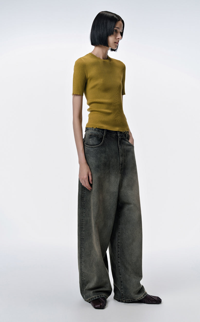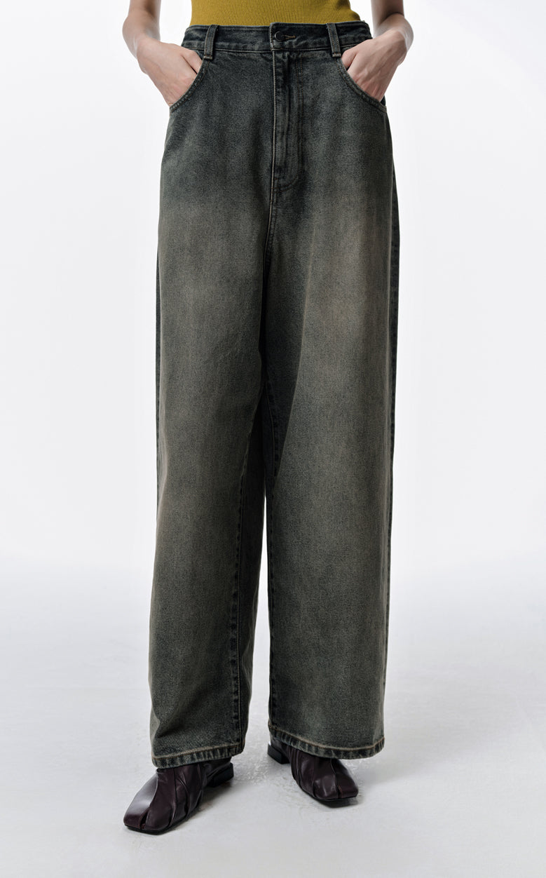 Pants / JNBY Cool Casual Washed Wide-leg Jeans(100% cotton)