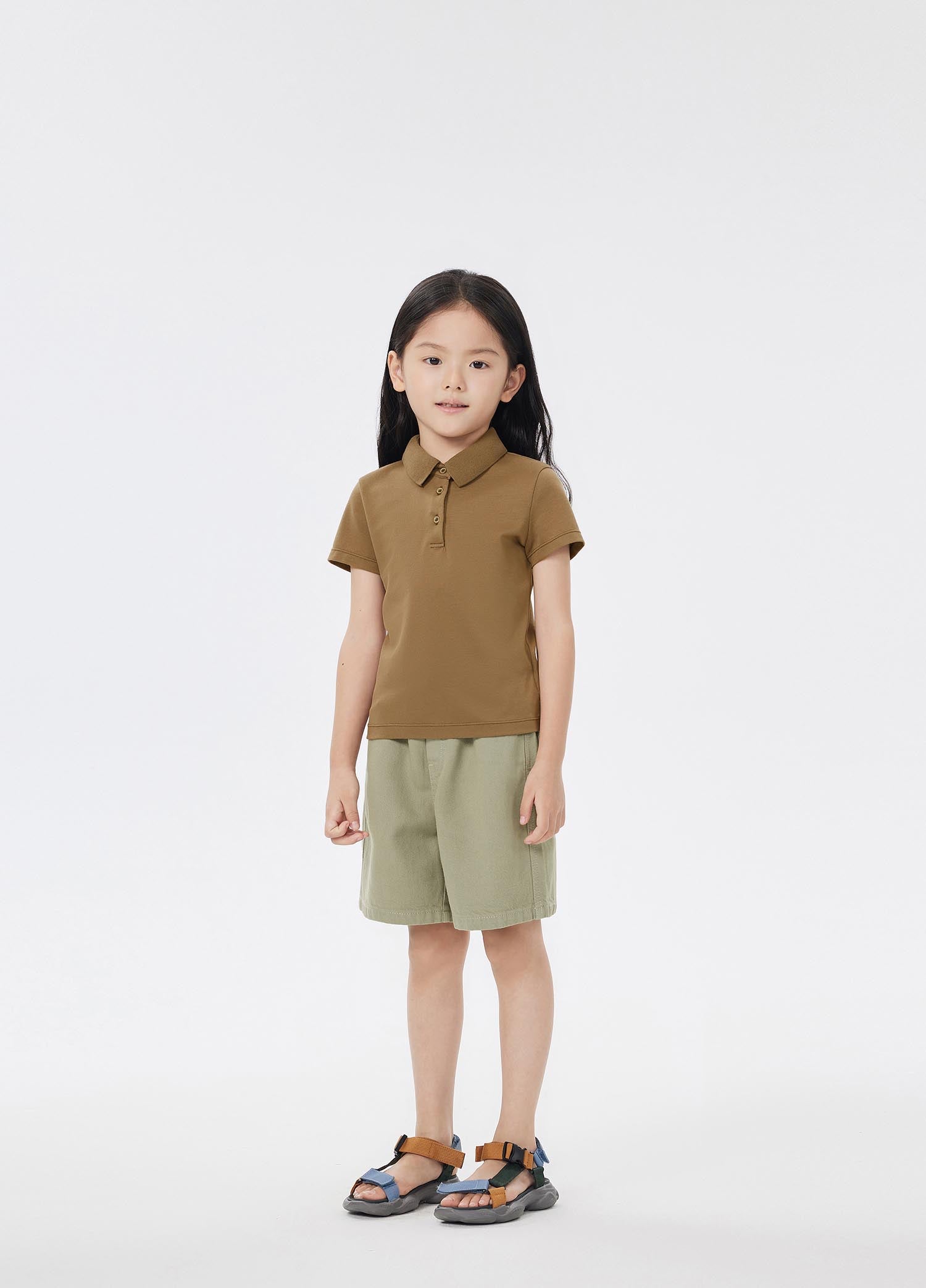 A denim added with modal and silk, which feels lighter and softer than ordinary denim. It is comfortable and has a sense of quality for children to wear.