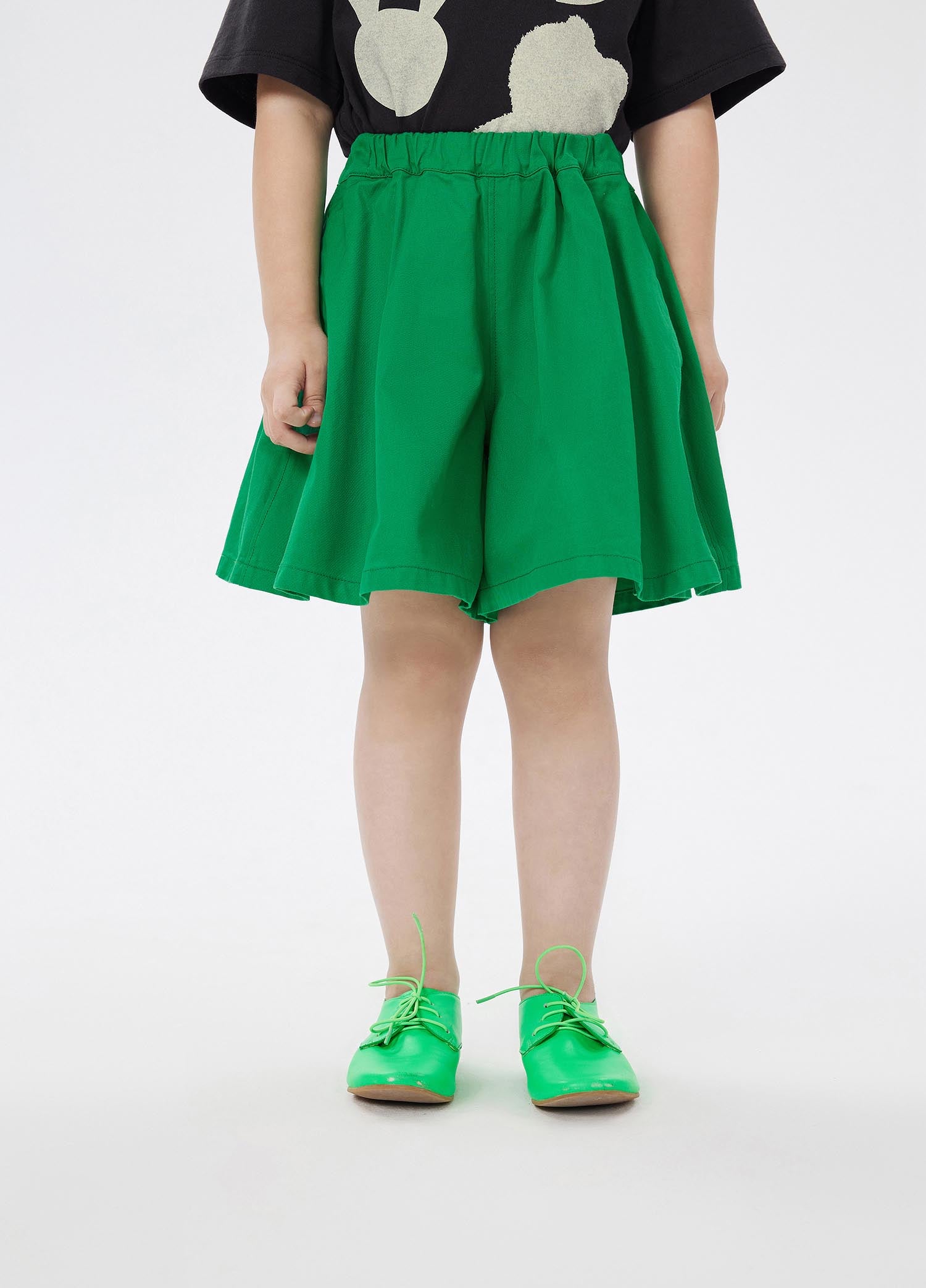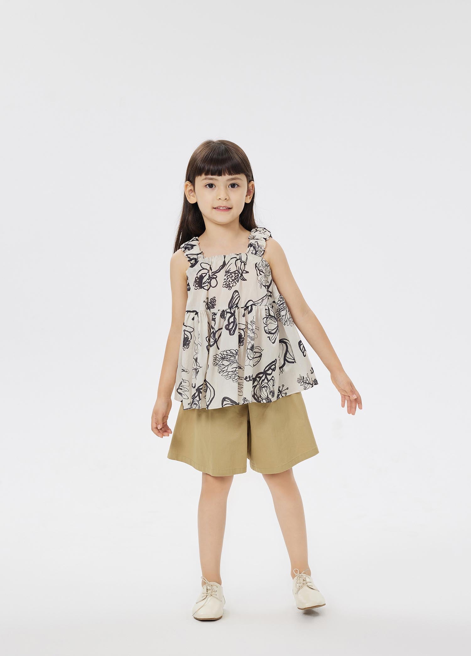 The all-cotton twill fabric is used, the cloth surface is tight, and the hand feels dry. It is very comfortable for children to wear next to the body, and it is not easy to stick to the body when sweating. The design of the culottes not only retains the advantages of trousers that are easy to move around and not easy to lose, but also has the ladylike feel of skirts. It is suitable for little girls to wear at home or at school.