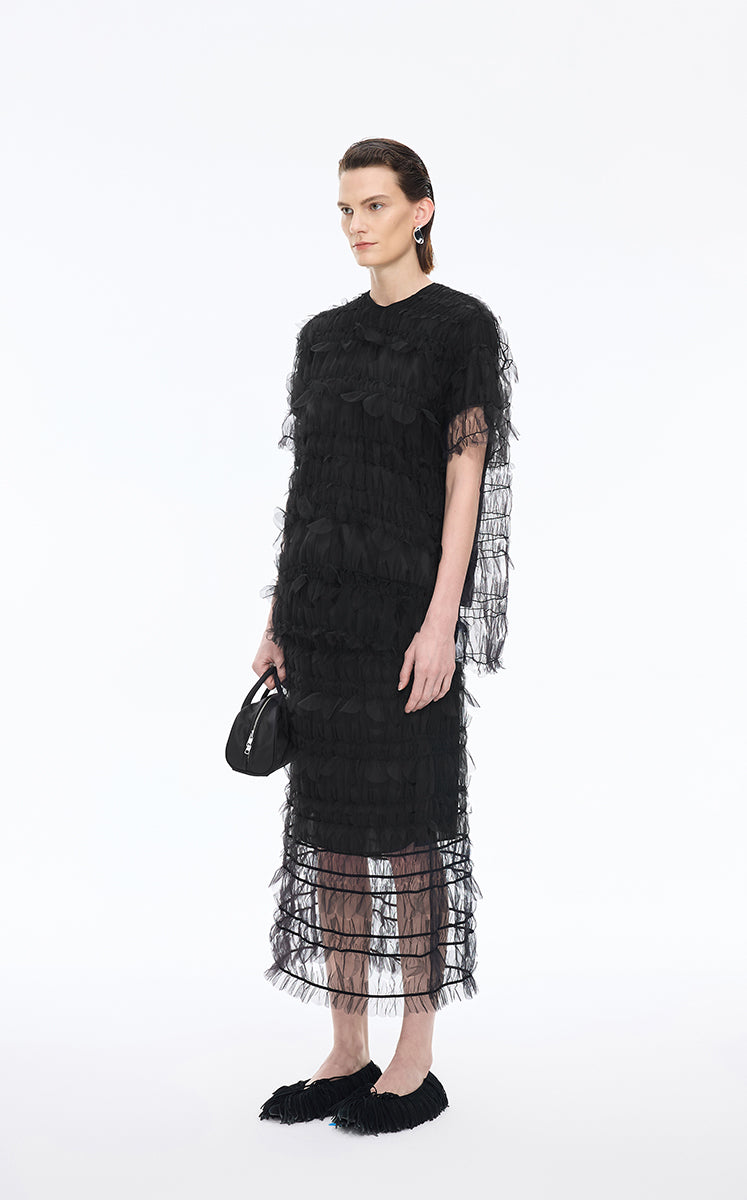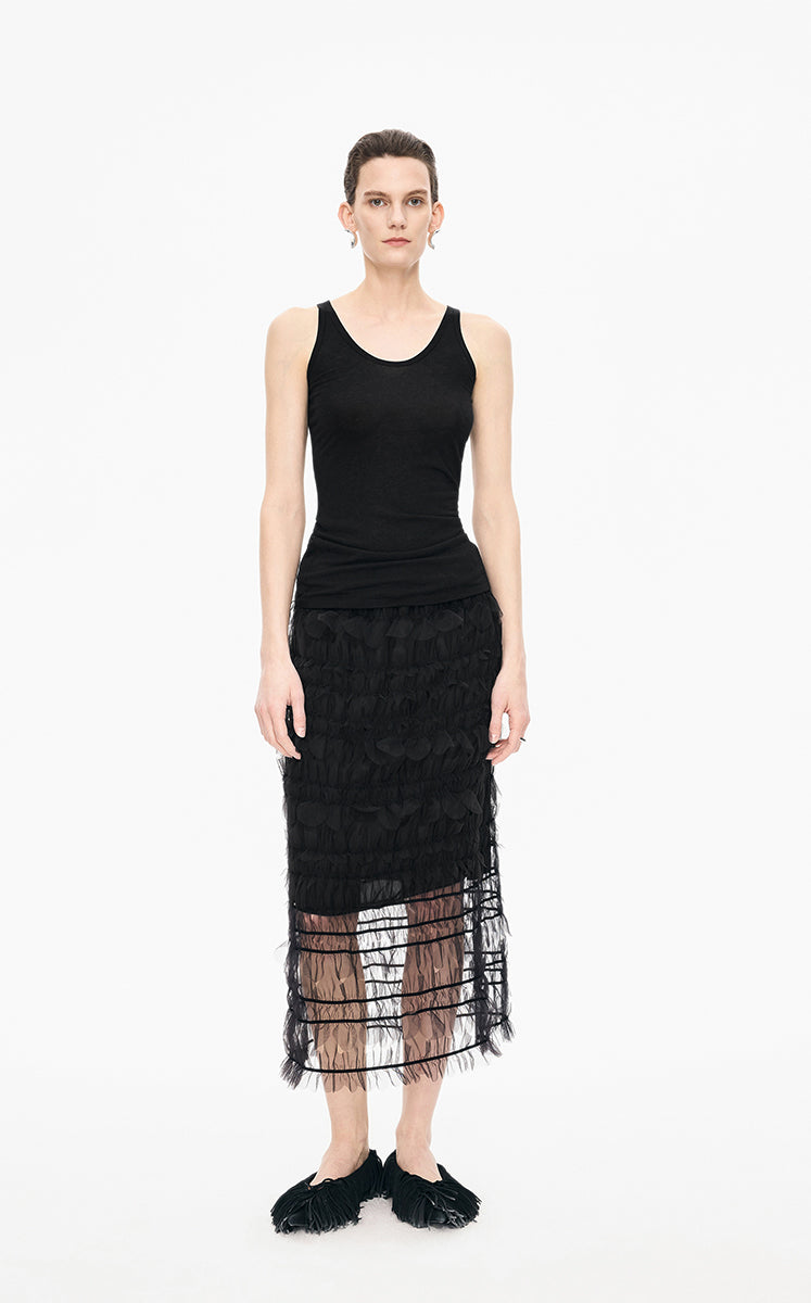 Skirt / JNBY 3D Floral Nylon Mesh Midi Skirt
