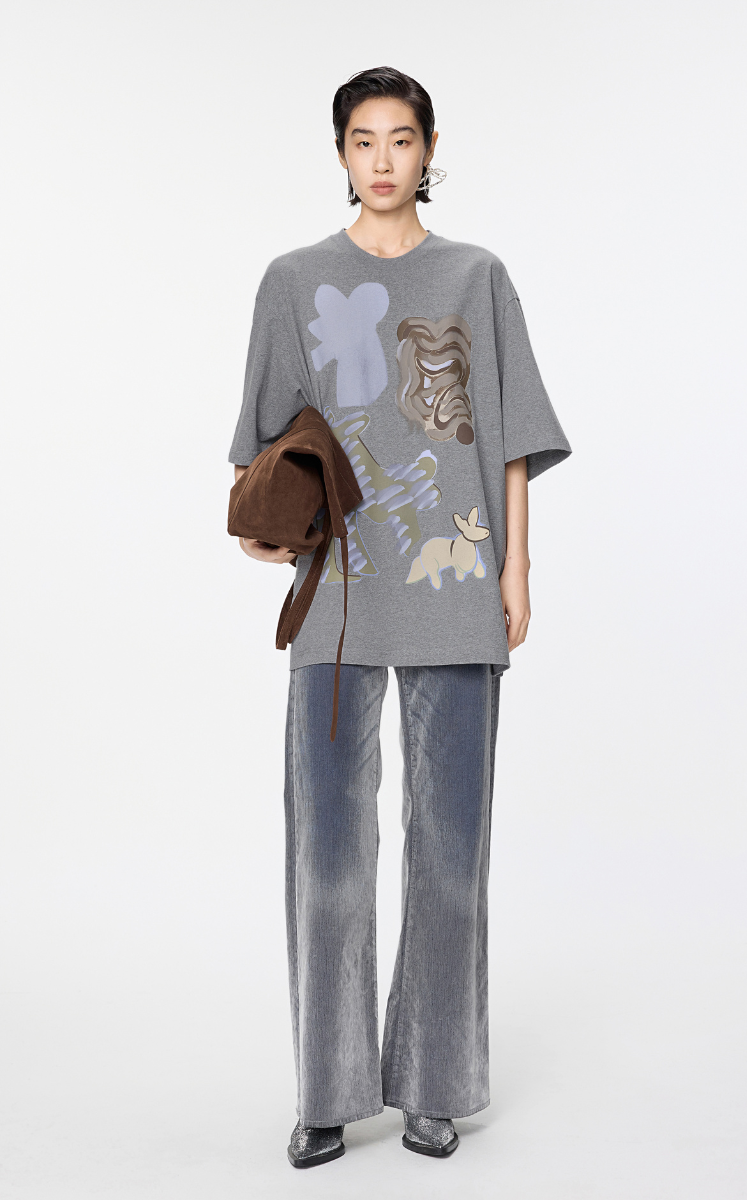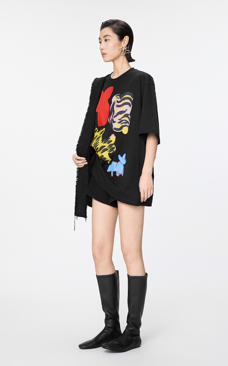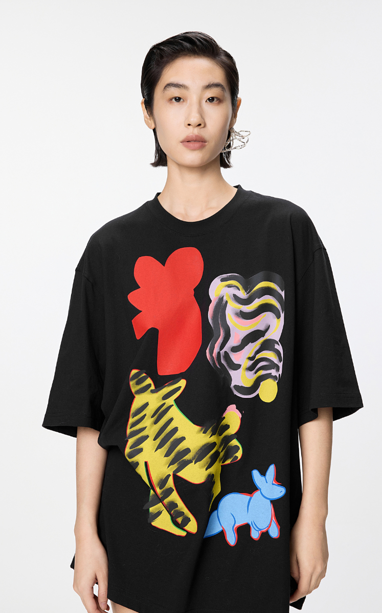 T-shirt / JNBY Oversized Chic Cat Graphic T-Shirt