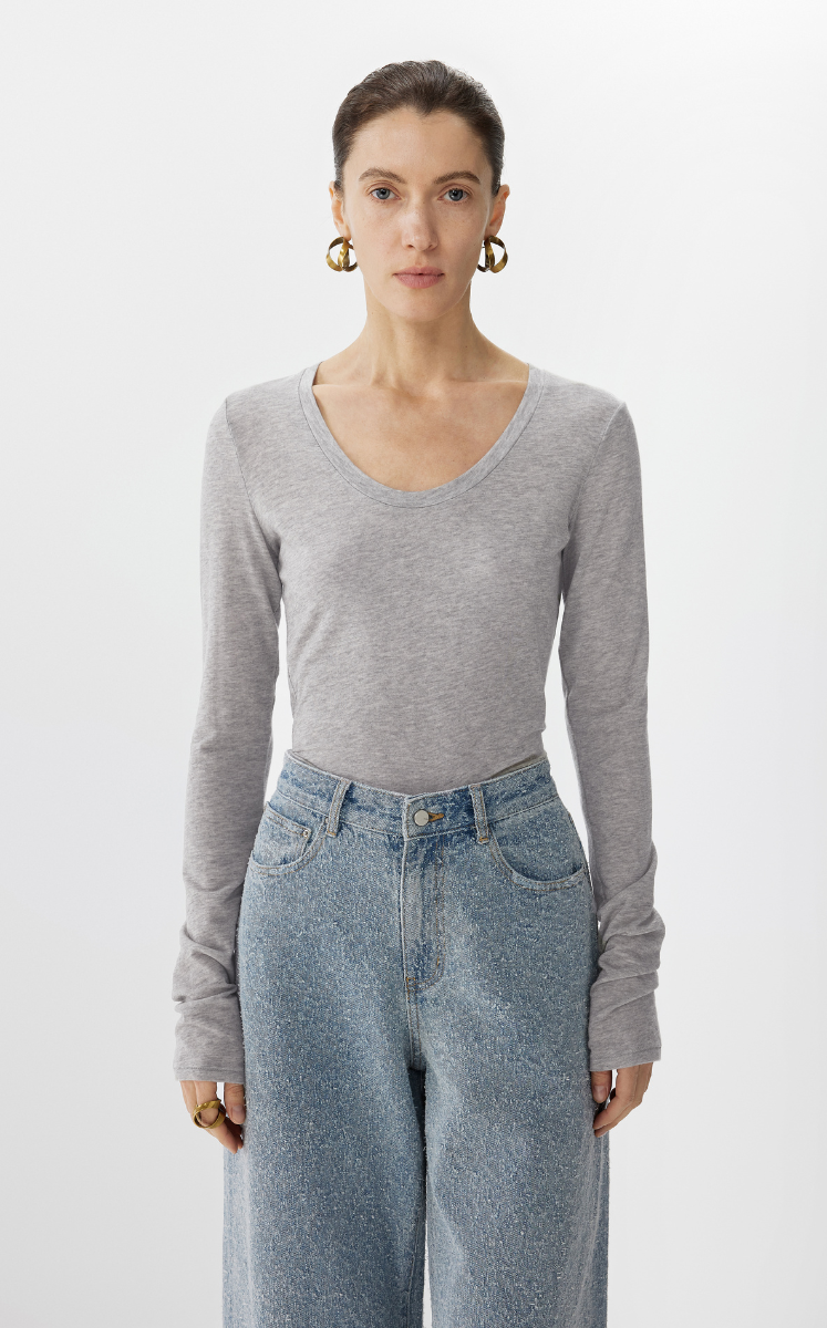 T-shirt / JNBY Tencel-Cashmere Slim Fit Long Sleeve T-Shirt
