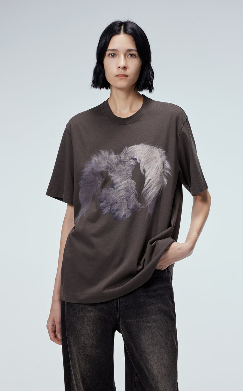 T-shirt / JNBY Windblown Rabbit Round Neck Printed Loose Fit T-shirt(100% Cotton)