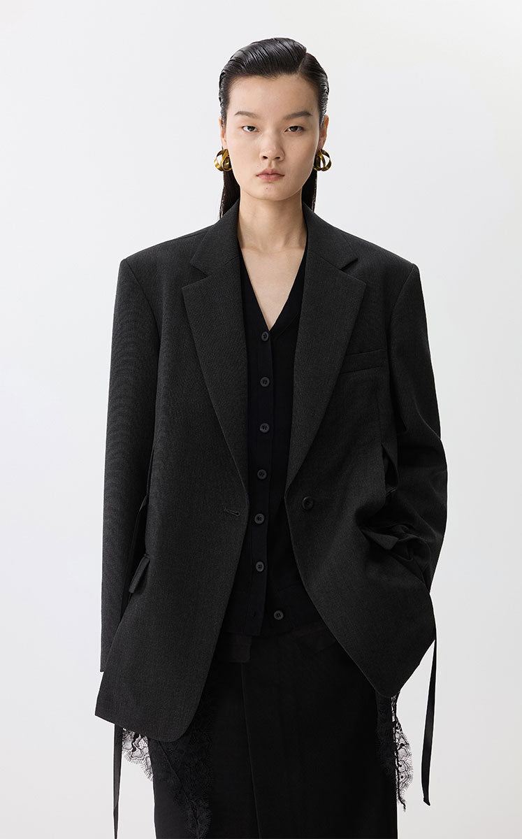 1.Front, Sleeves, and Back (Outer Fabric): 100% Wool (excluding lining)