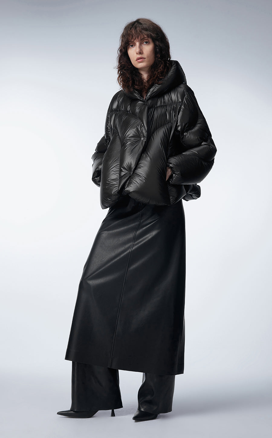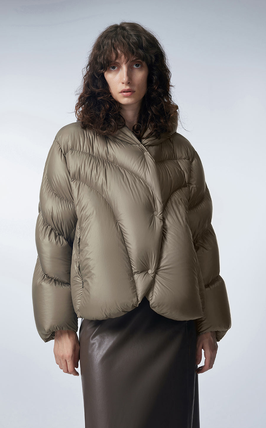 Coat / JNBY Hooded Down Coat in Curved Hem