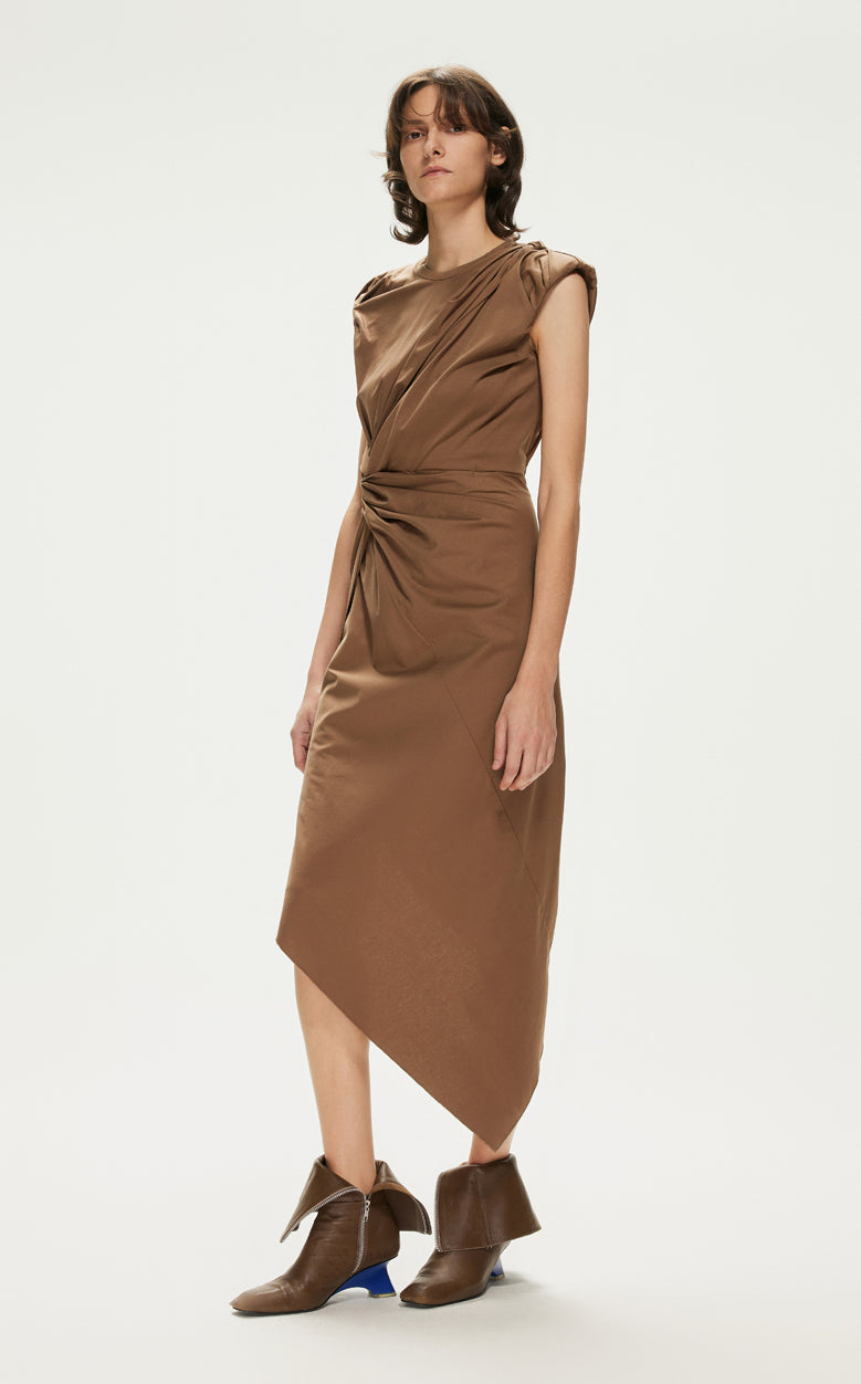 Shoulder pad design, retro and modern. High-waist pinched pleat details, elevating the waistline and making it more modern. Irregular slit cut, full of femininity. The fabric has the luster of silk fabric, crisp and wrinkle-resistant