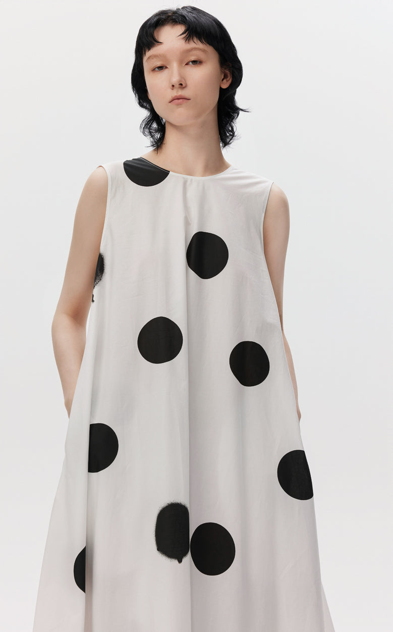 Dress / JNBY Round Neck Polka Dot Sleeveless V-neck Wavy Edge A-line Dress(100% cotton)