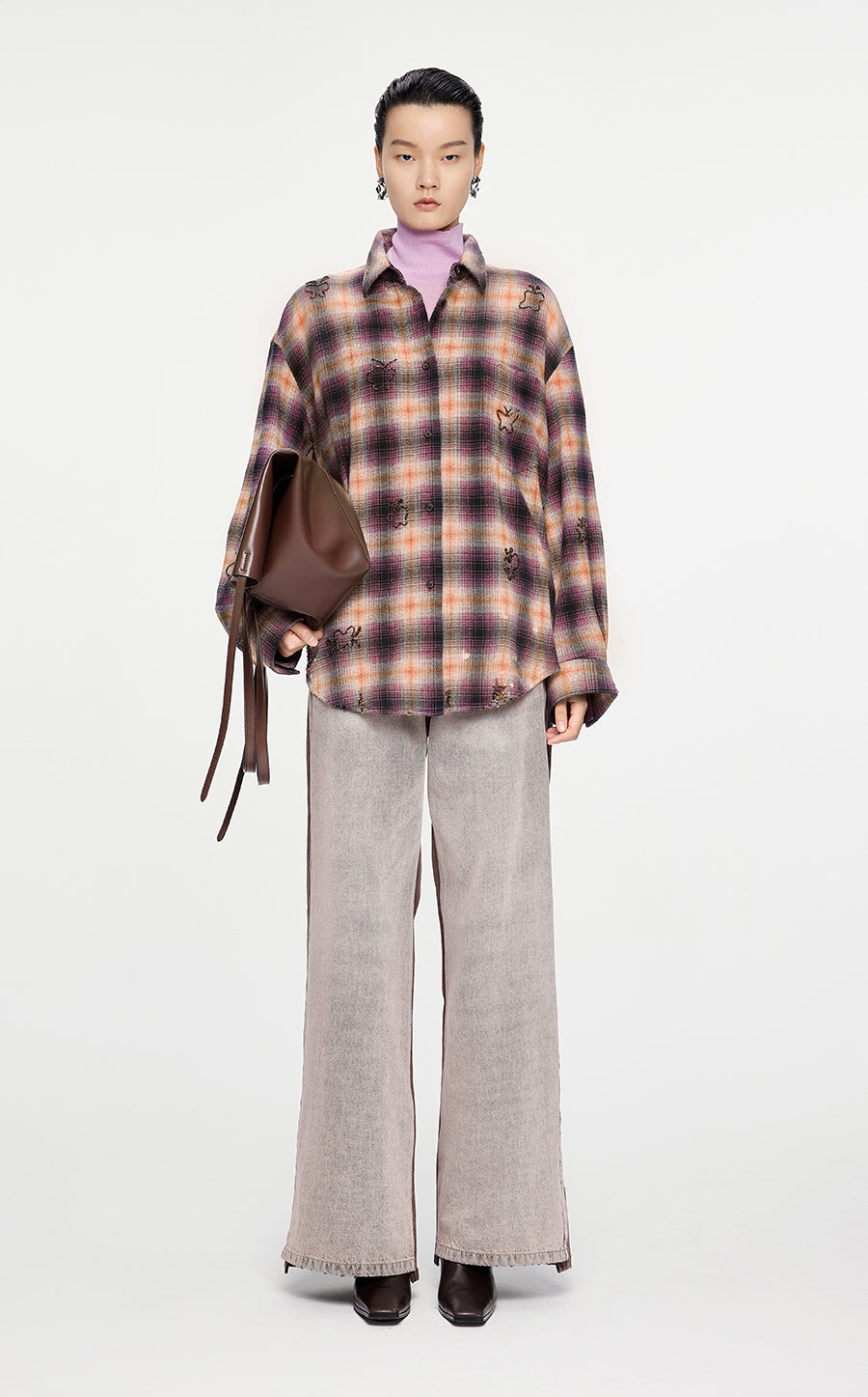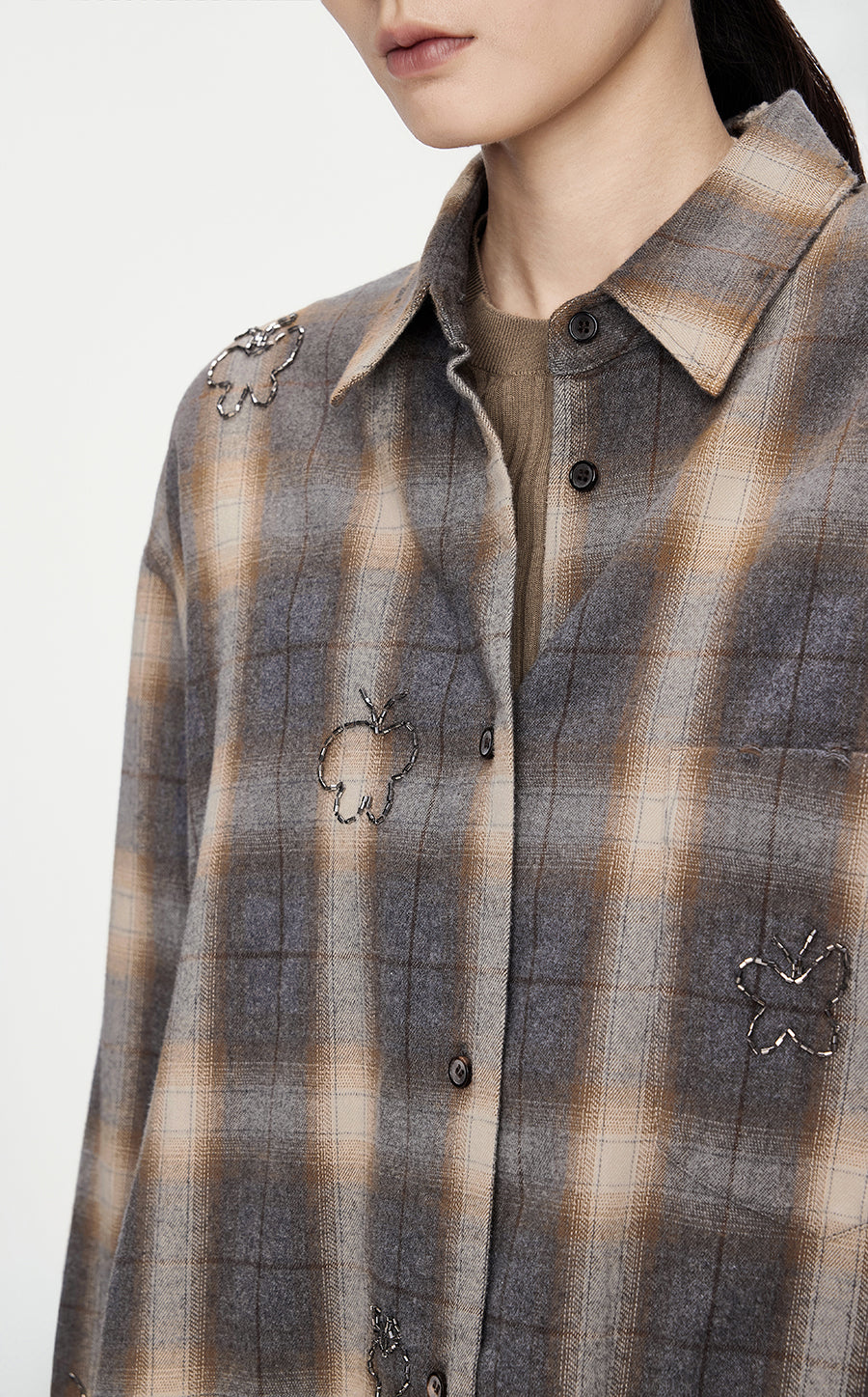 Shirt / JNBY Butterfly Pattern Plaid Shirt