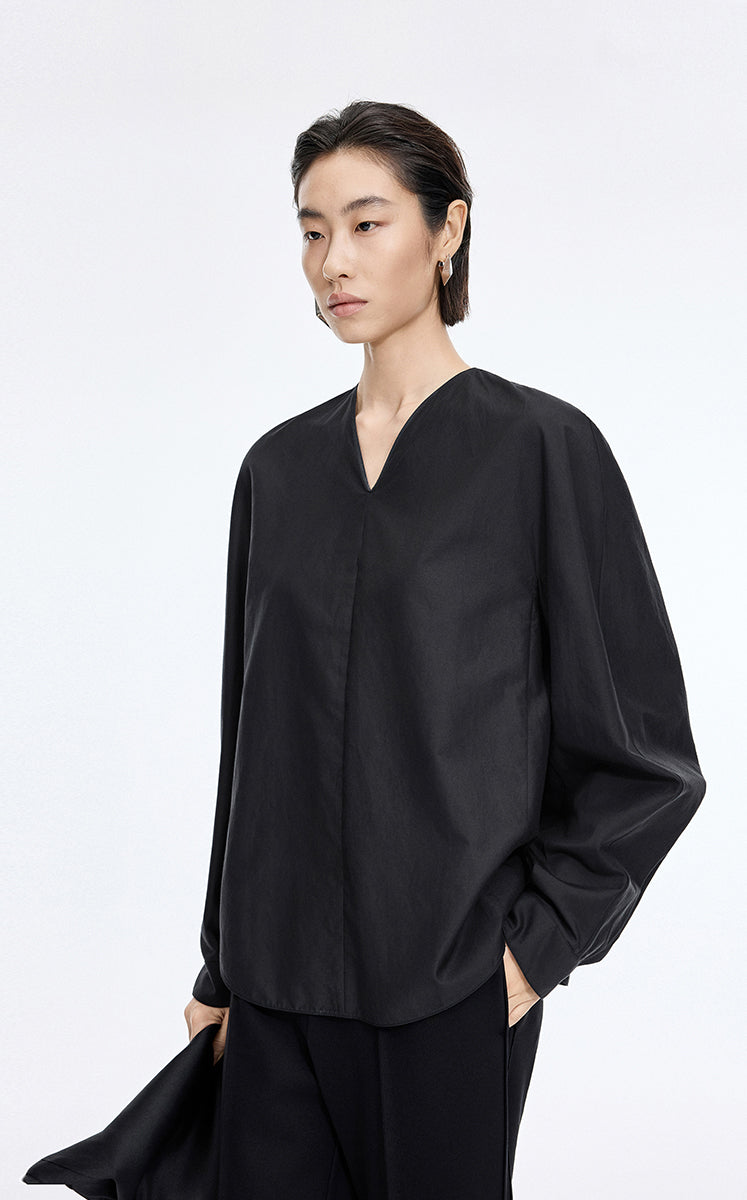 Shirt / JNBY Cotton Silk V-Neck Long Sleeve Top