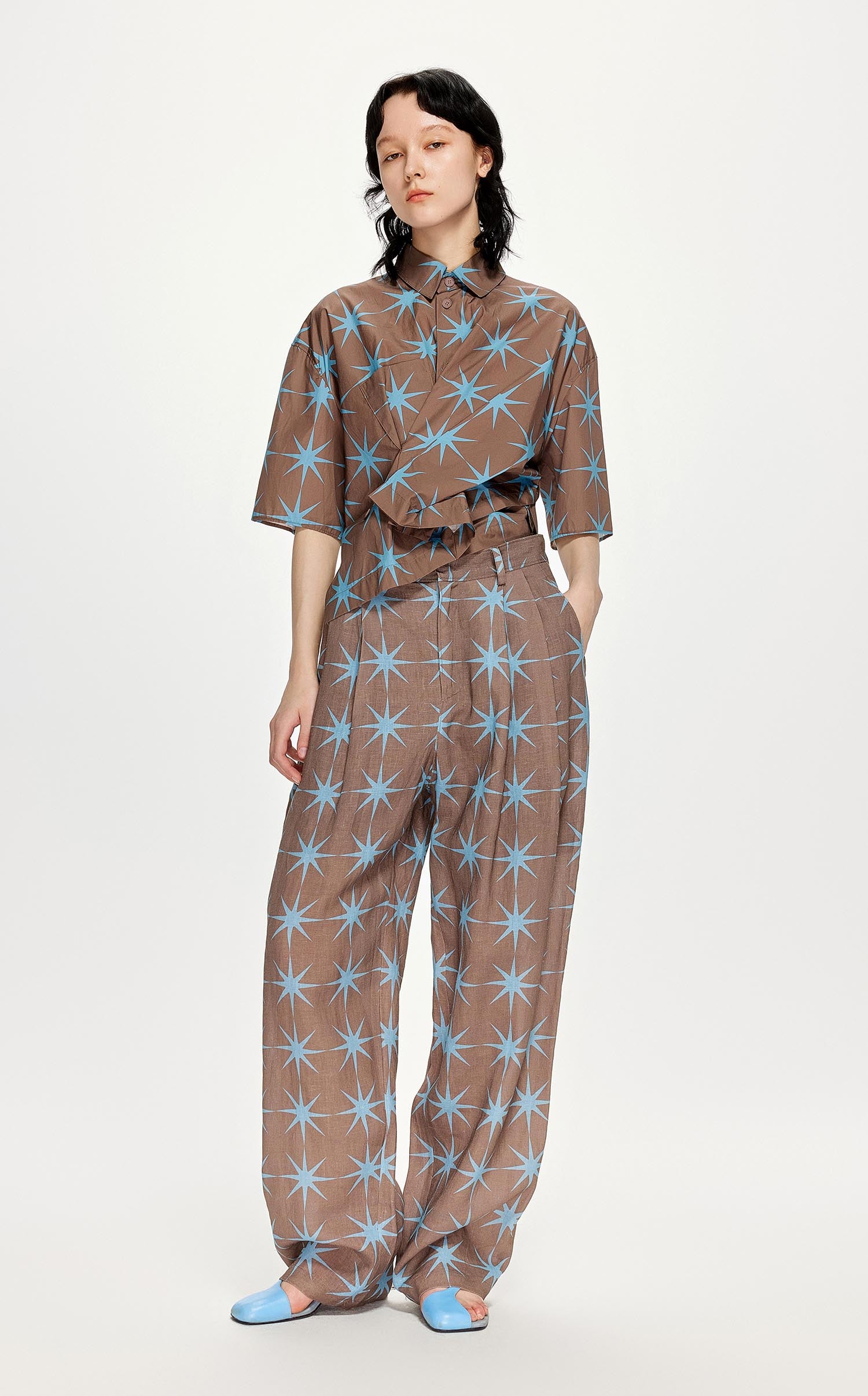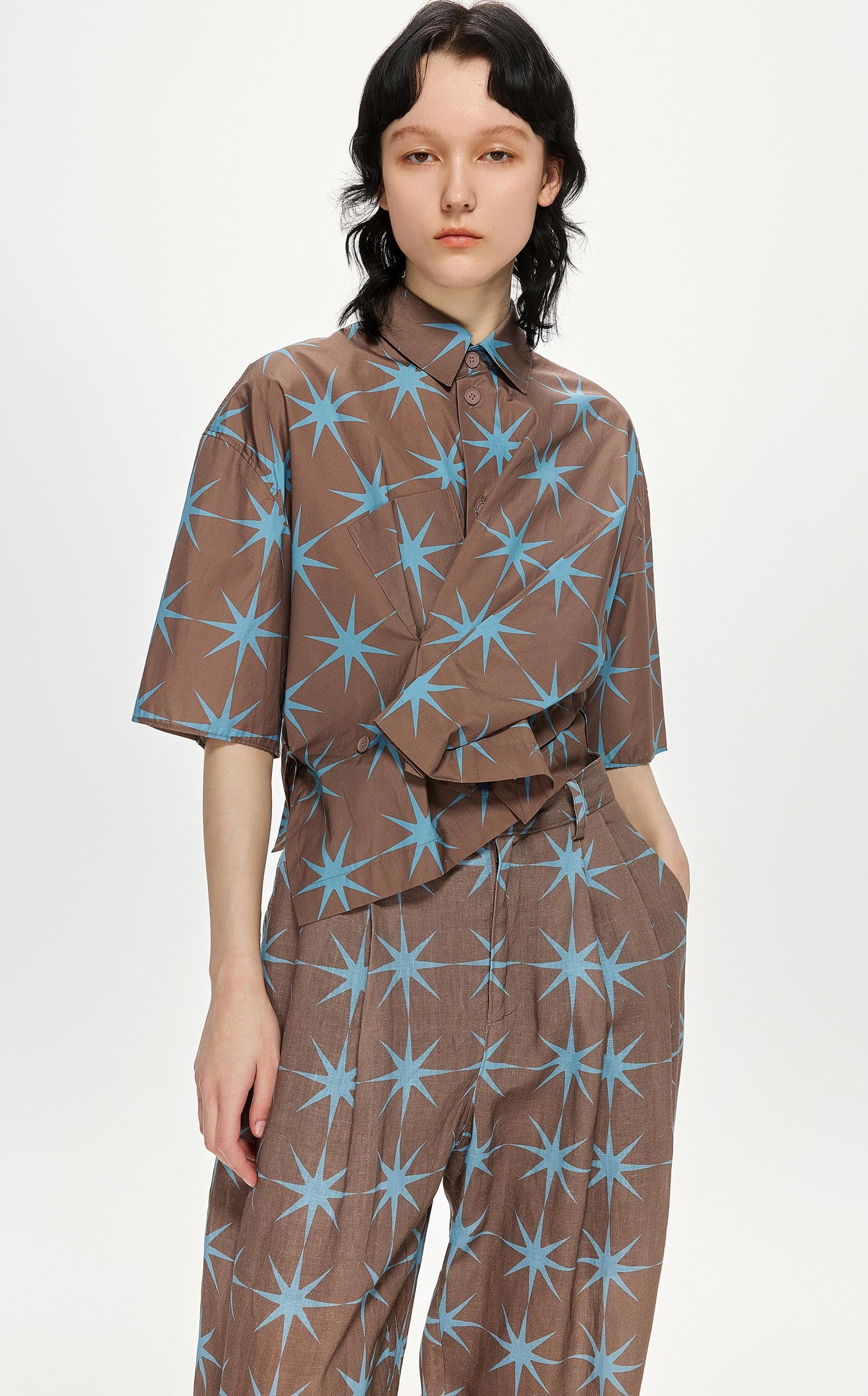 Shirt / JNBY Star Print Short Sleeve Crop Shirt (100% Cotton)