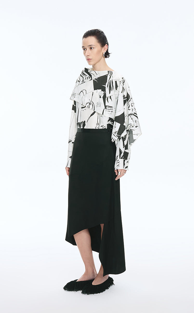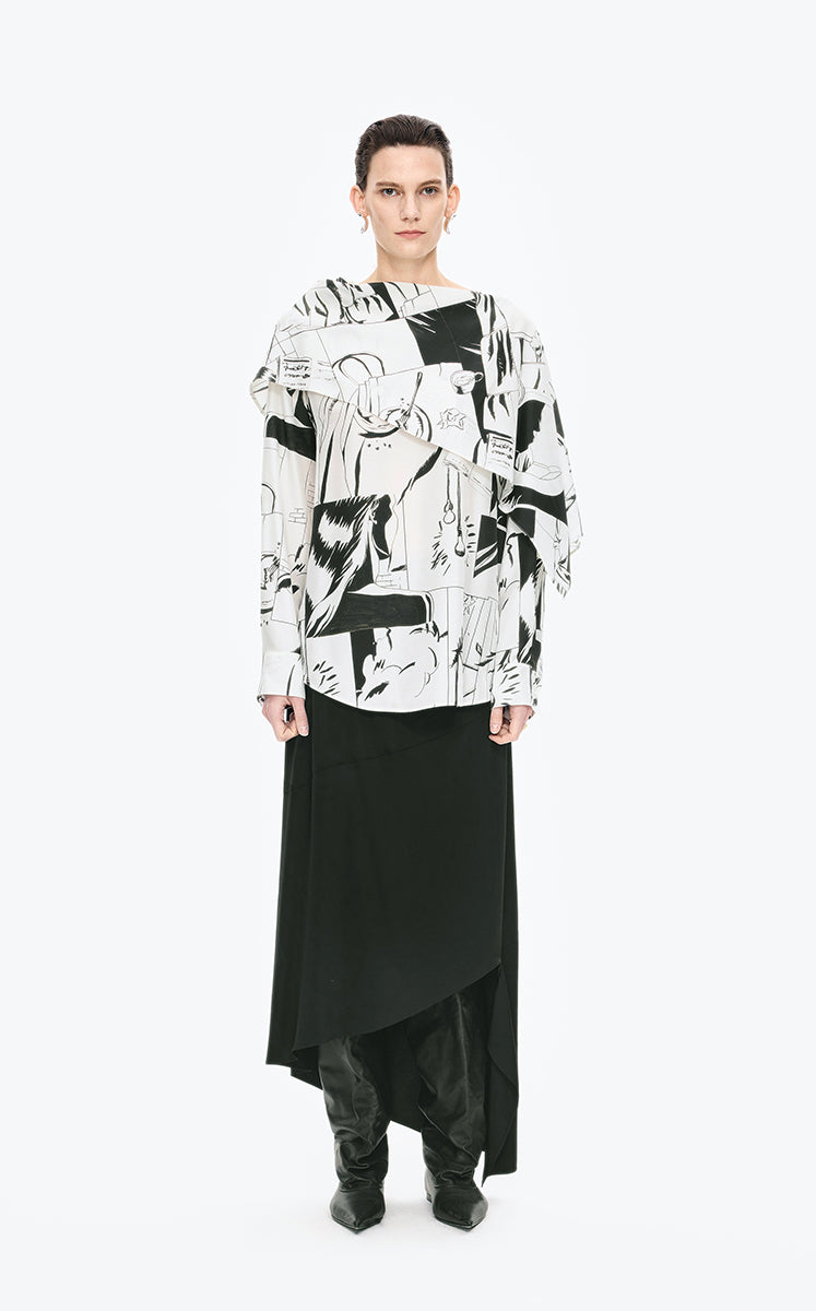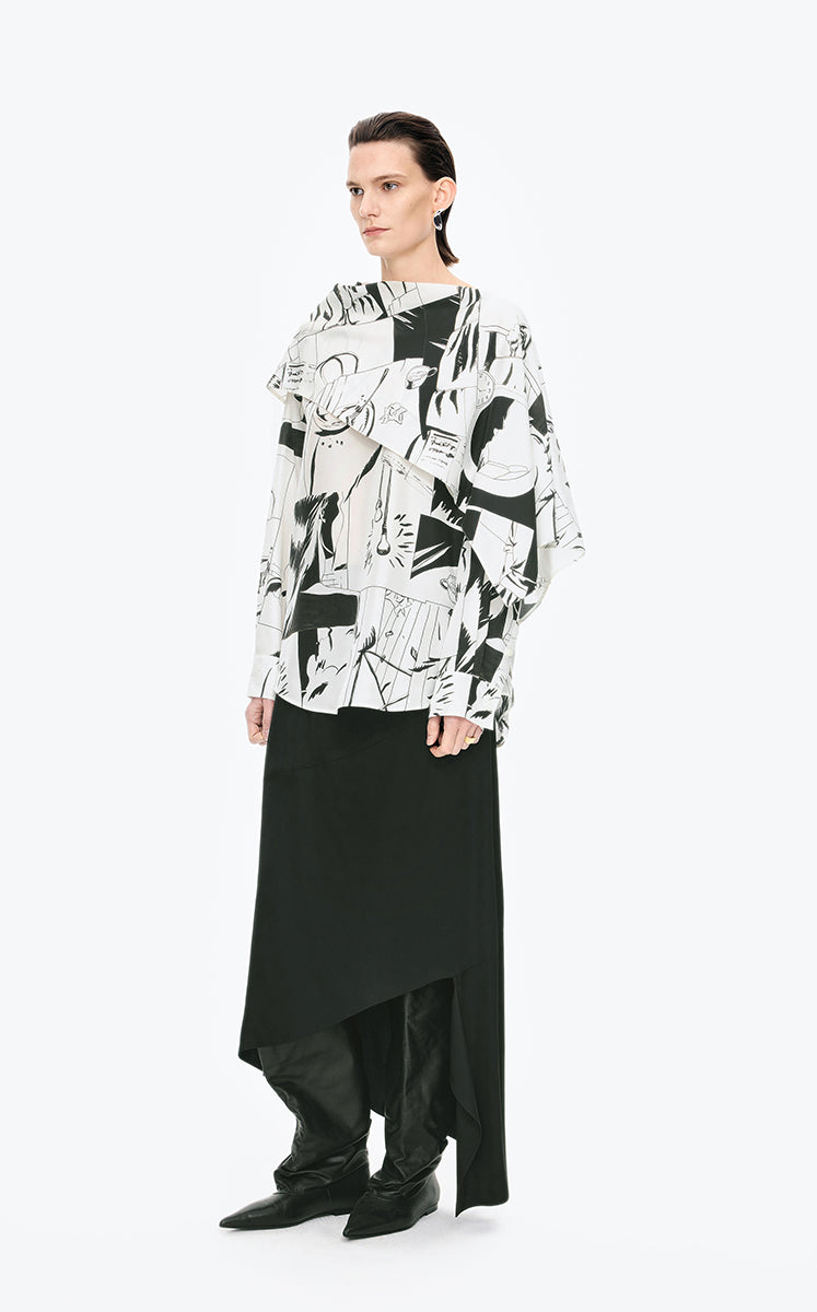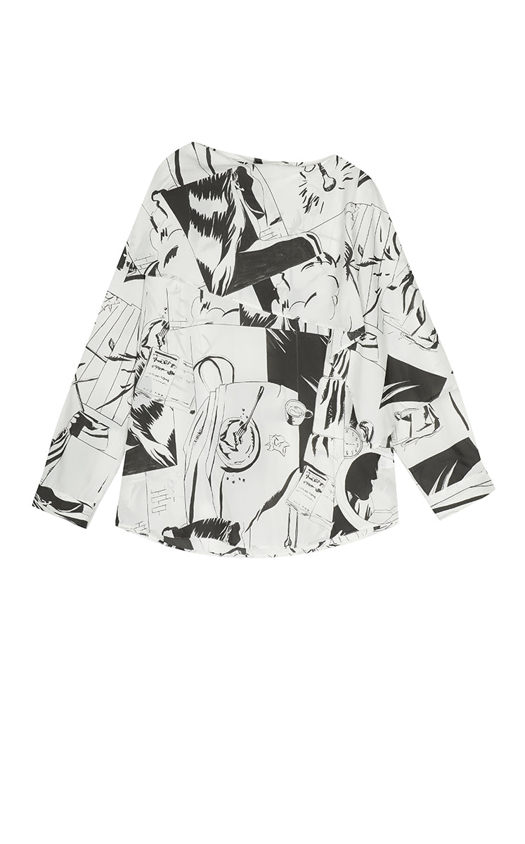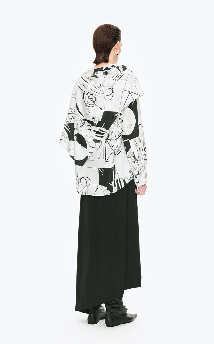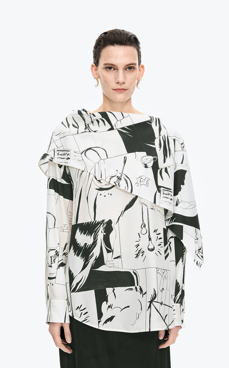Shirt / JNBY Wrap-Style Silk Comic Print Blouse