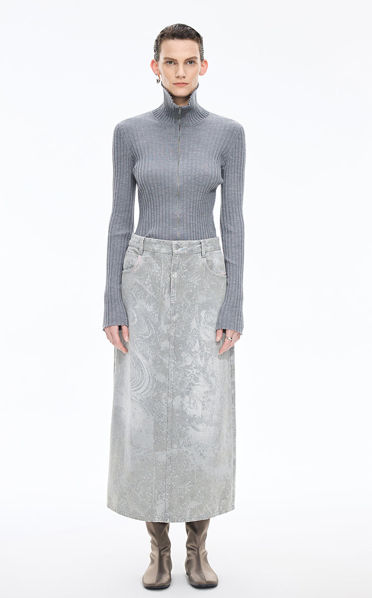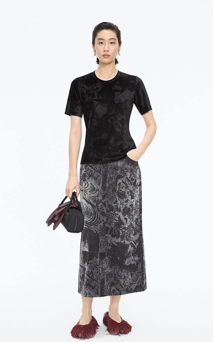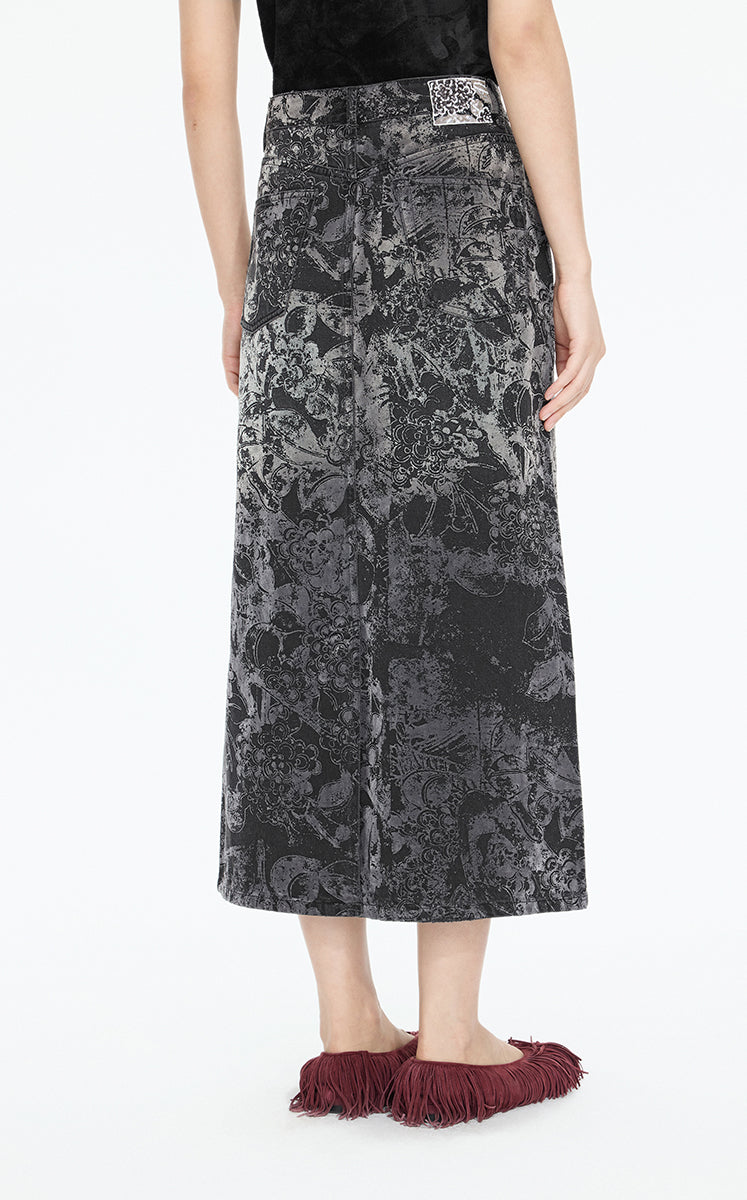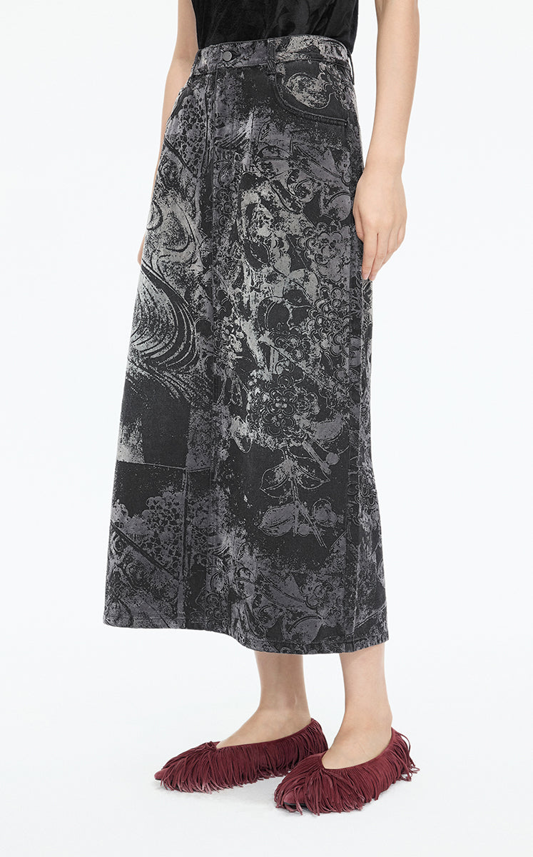 Skirt / JNBY A-Line Oriental Flocked Pattern Midi skirt