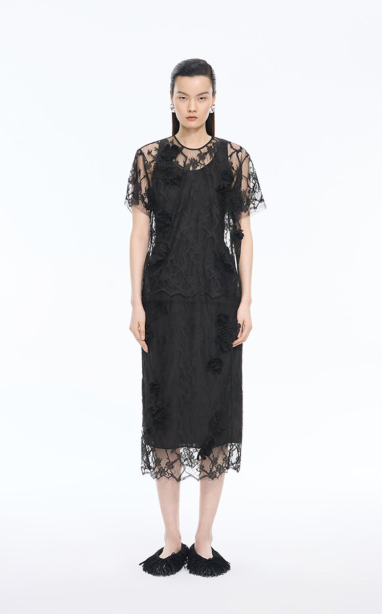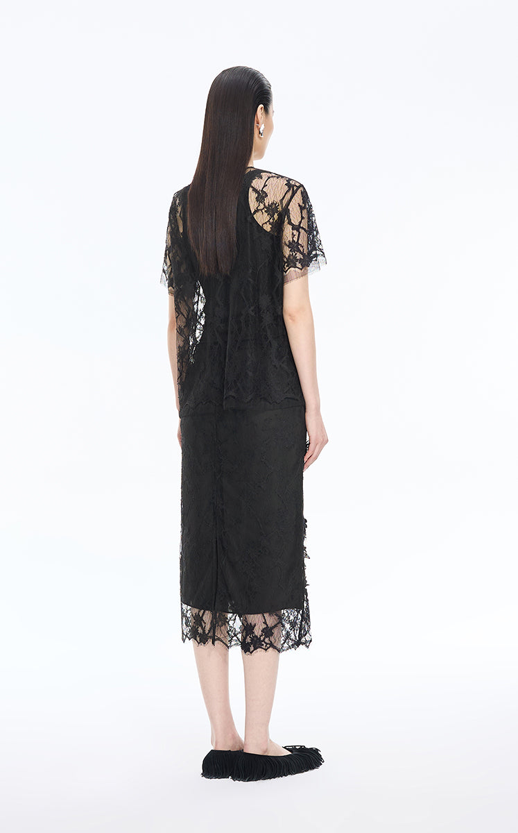 Skirt / JNBY Plum Blossom Lace Midi Skirt