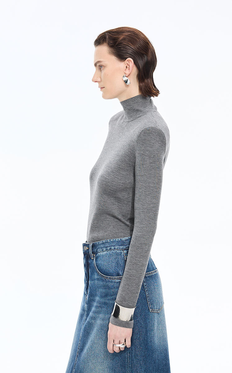 Sweater / JNBY Slim-Fit T-Neck Wool Blend Pullover
