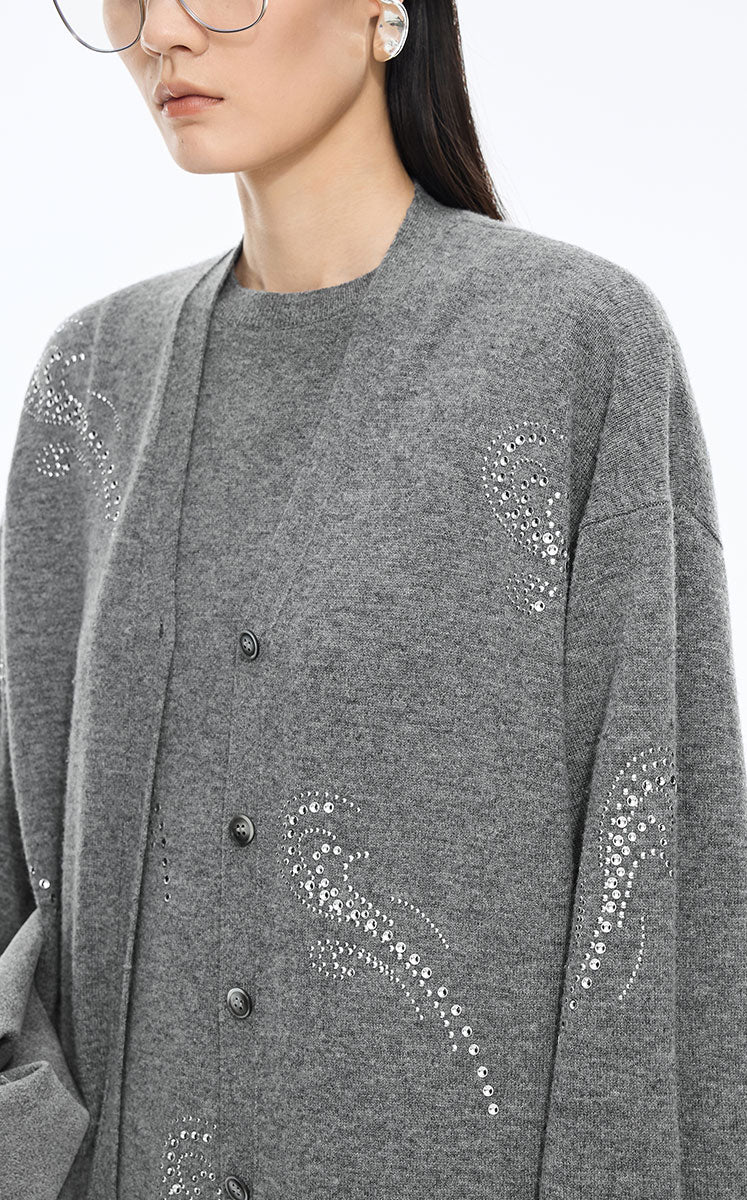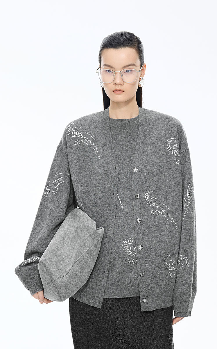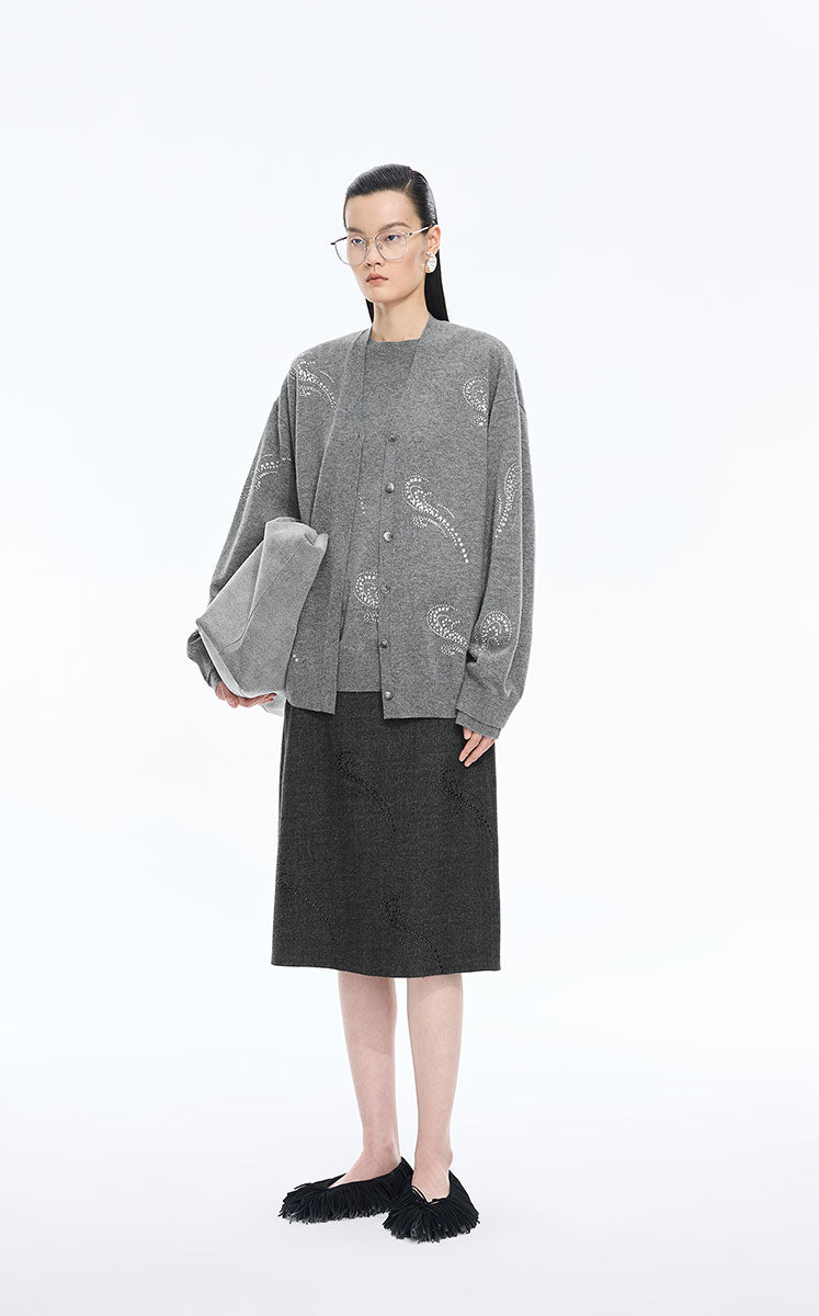 Sweater / JNBY Wool-Cashmere Crystal Wave Cardigan