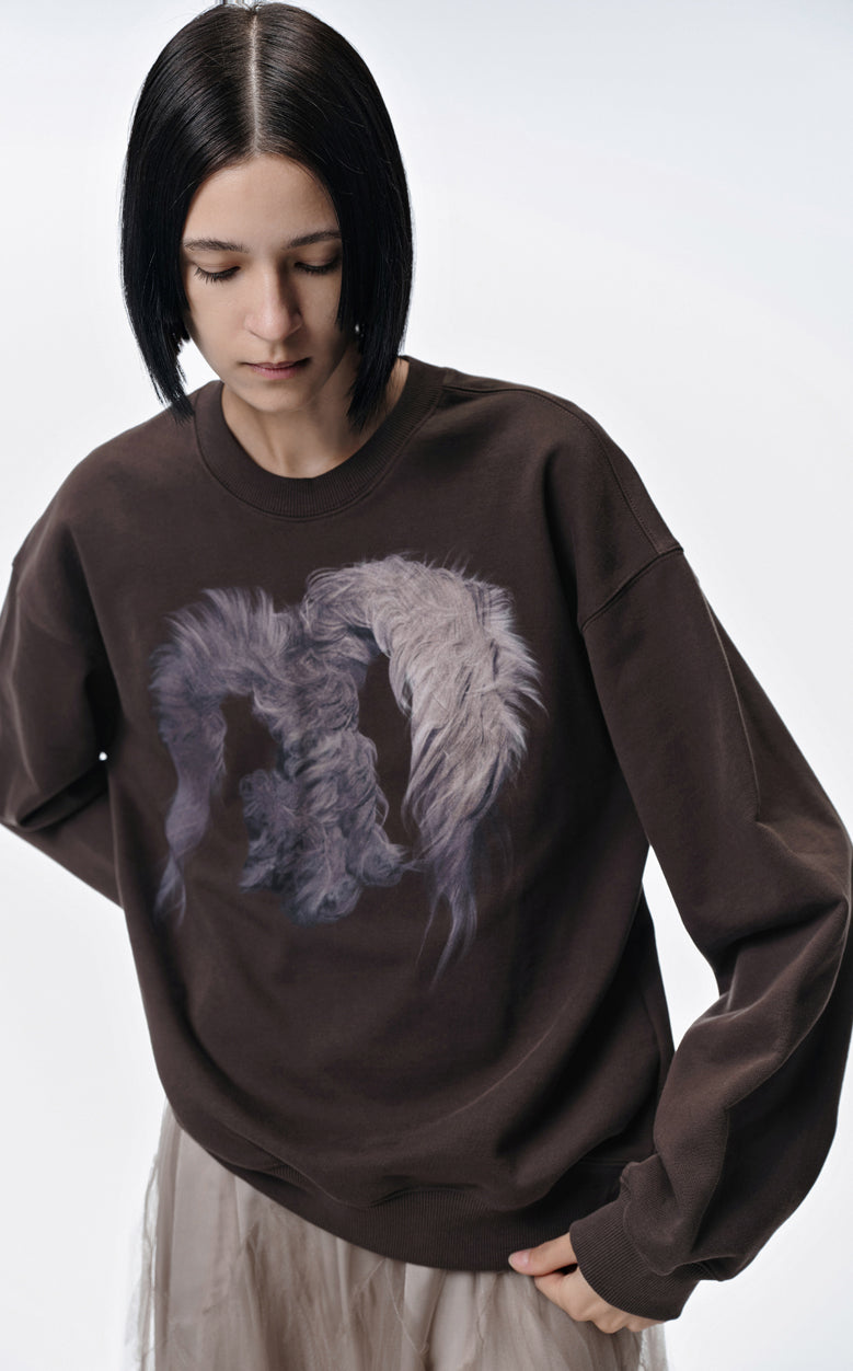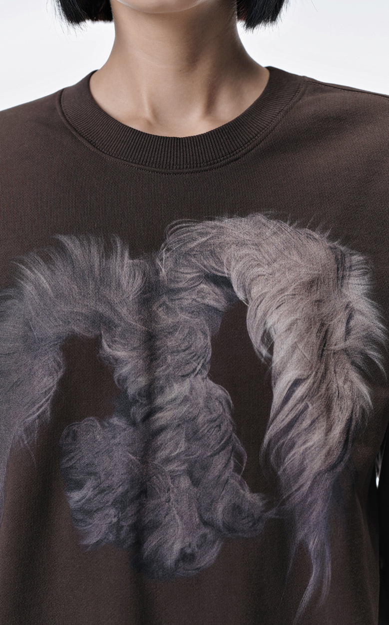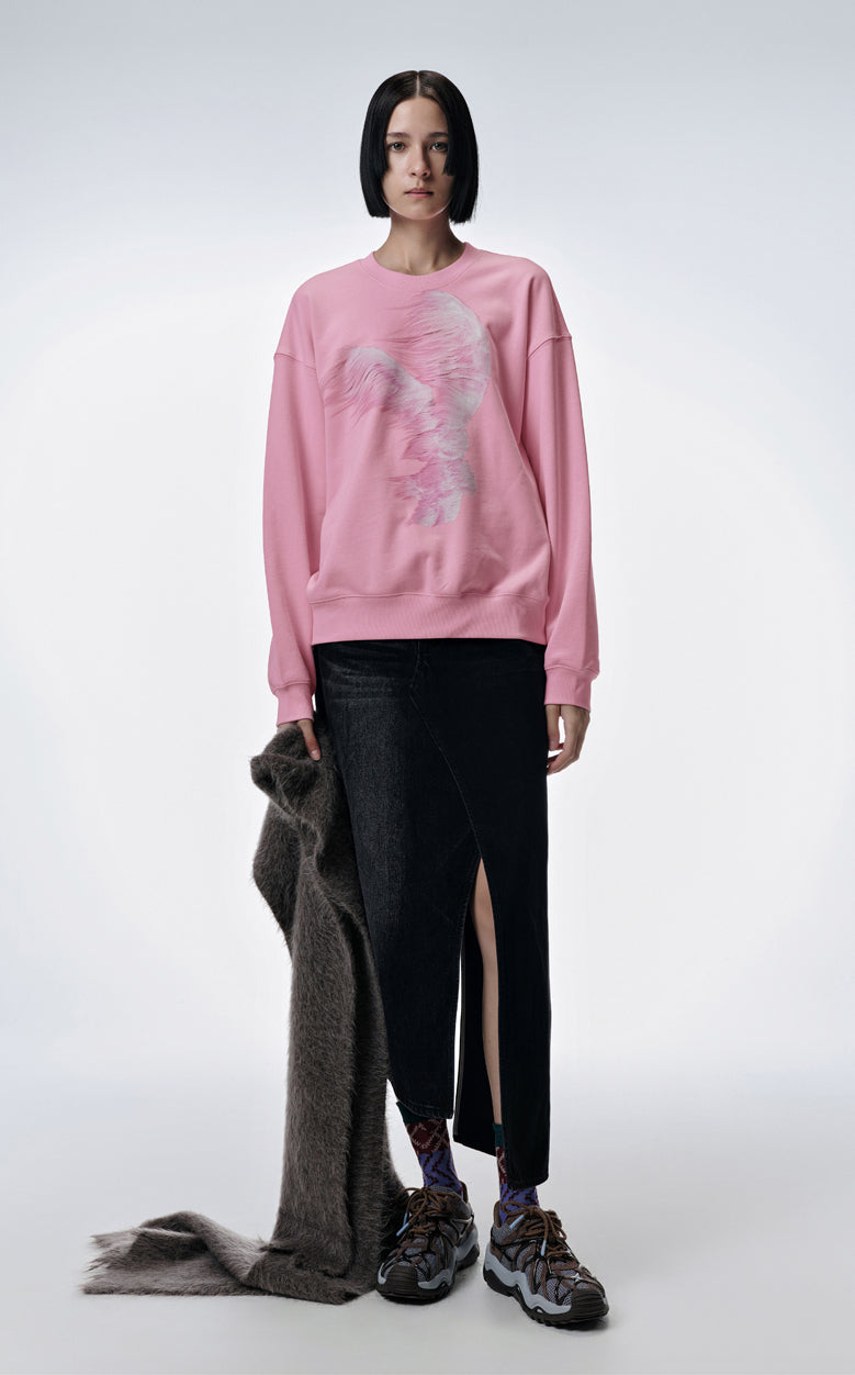 Sweatshirt / JNBY Windblown Rabbit Pattern Loose Fit Round Neck Long Sleeve Sweatshirt