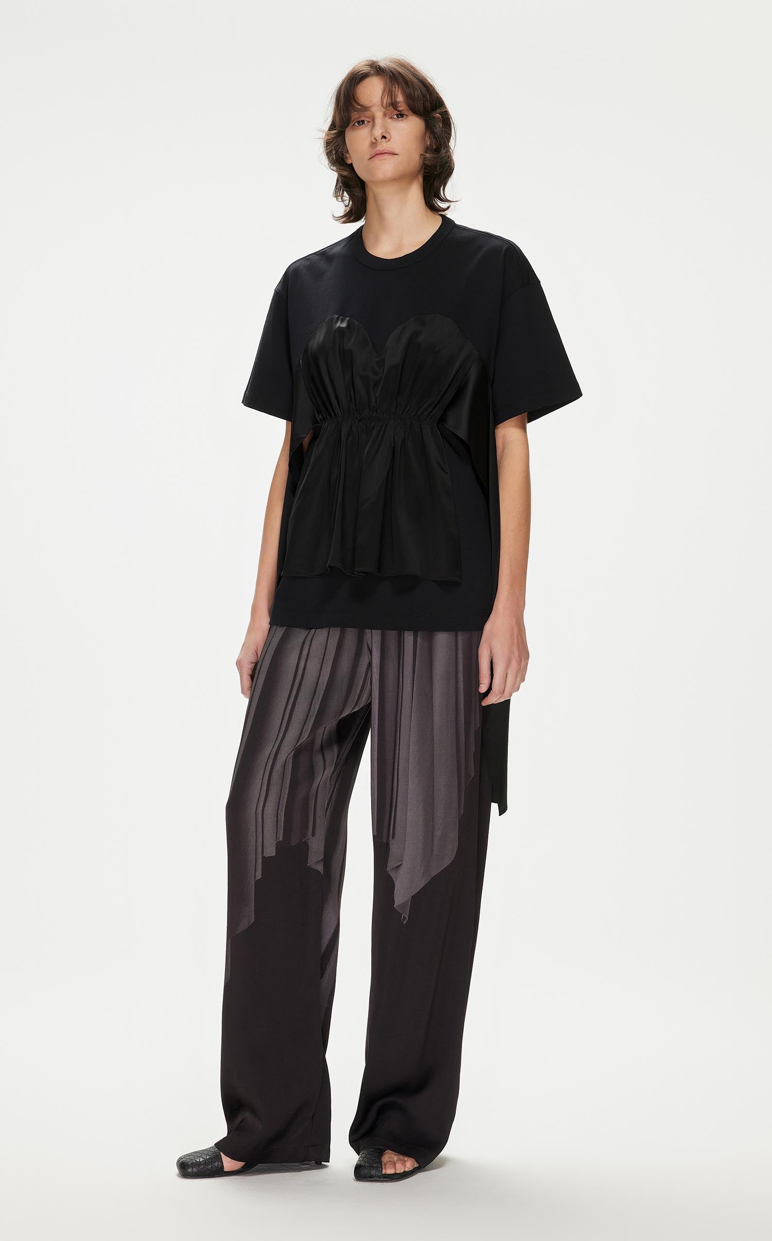 T-Shirt / JNBY Loose Fit Patchwork Short Sleeve T-Shirt with Tassel (100% Cotton)