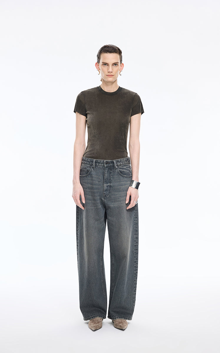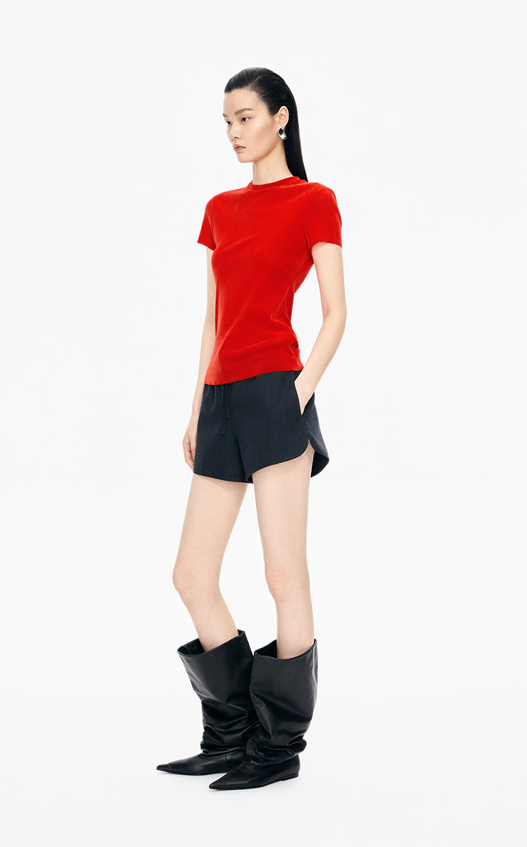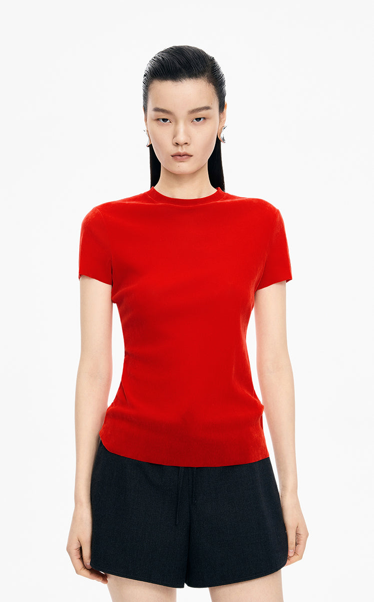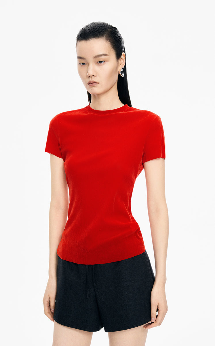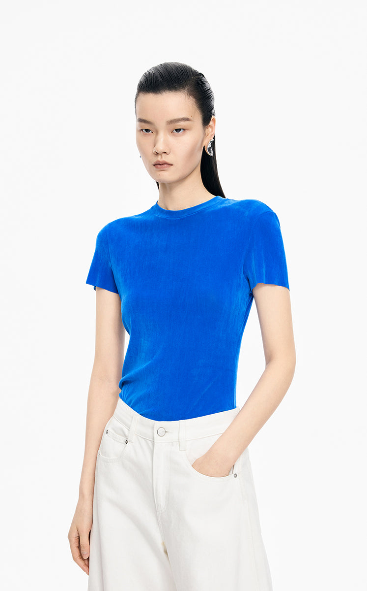 T-Shirt / JNBY Slim Fit Mesh Velvet Short Sleeve Tee